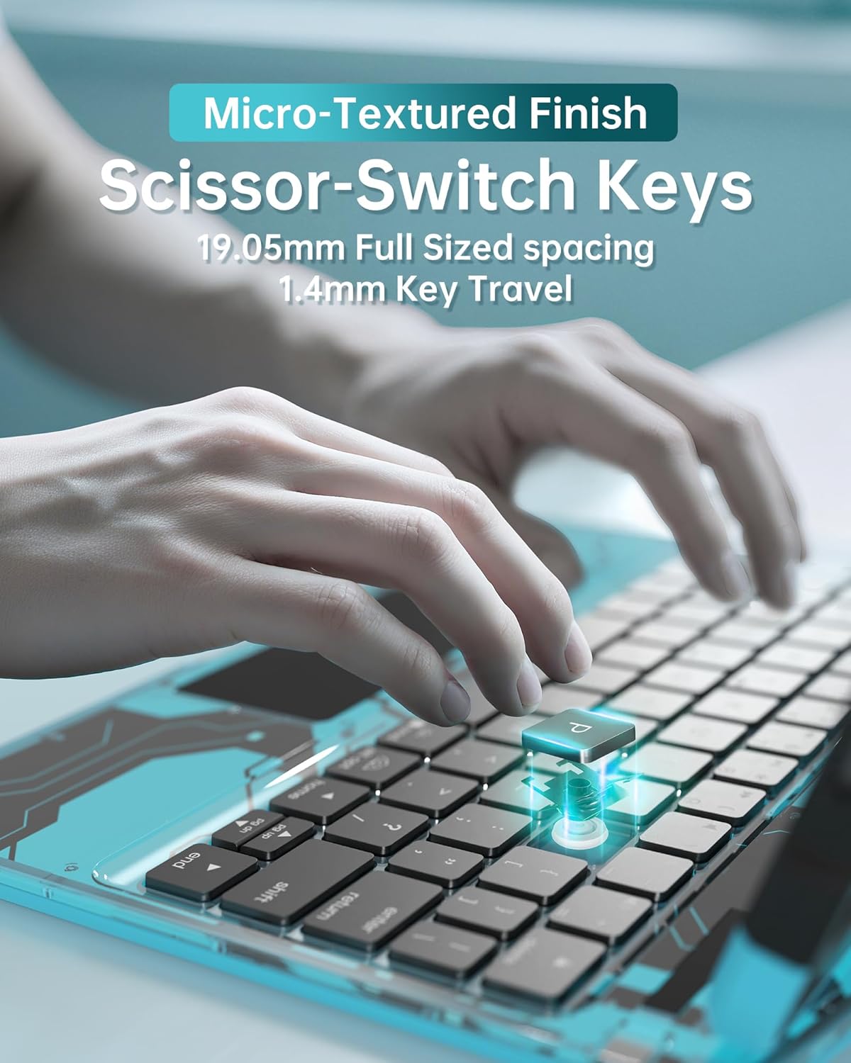 Intermerge for iPad 9th 10.2 inch Keyboard Case, 360° Transparent Multi-Touch Trackpad, 7-Color Backlit Keyboard, Pencil Holder, Type-C, Power Indicator for 9th/ 8th/ 7th - Nebula Core X