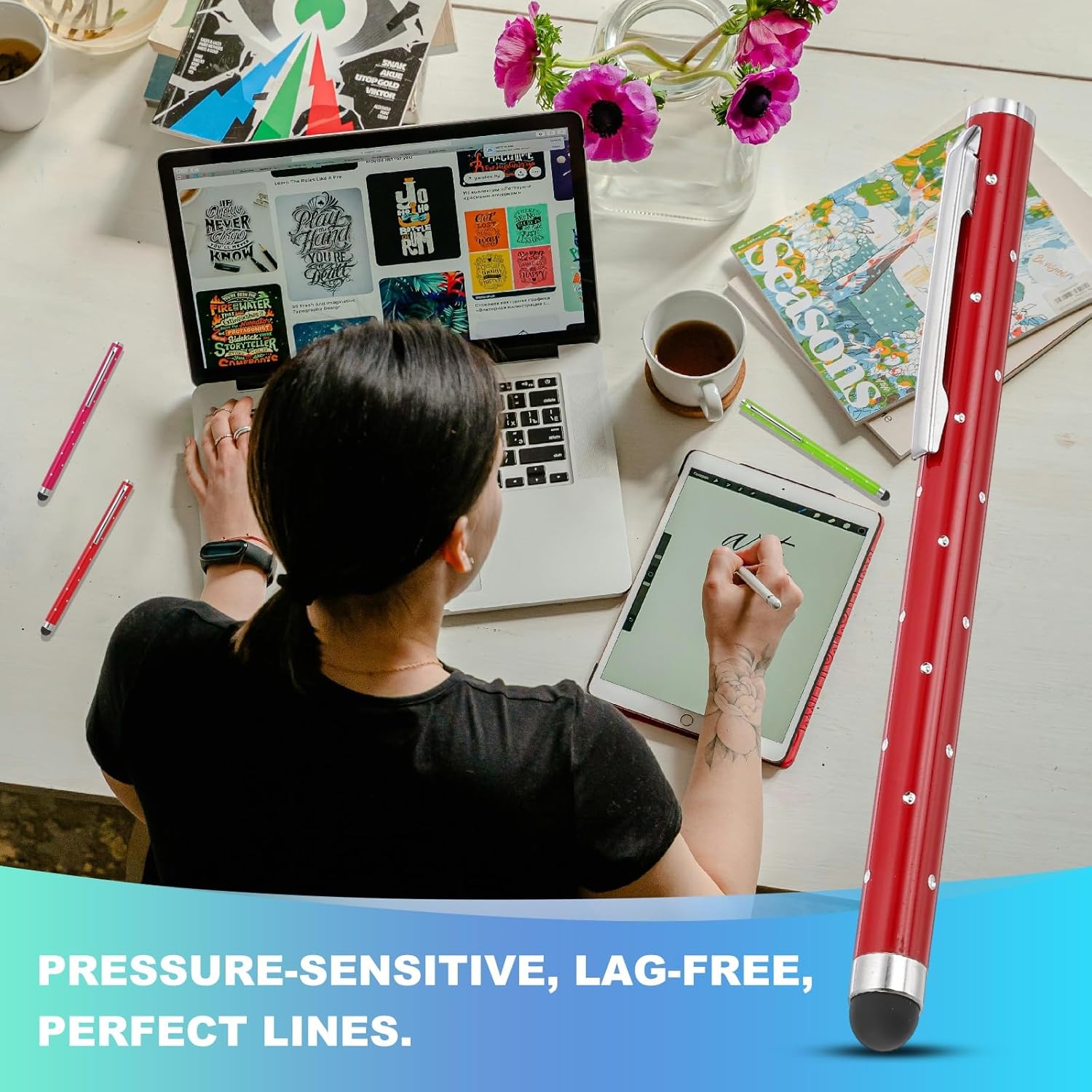 - Application: These shimmering crystal universal metal capacitive pens feature ultra-sensitive rubber tips made of soft silicone, ensuring gentle contact with screens to prevent scratches. Suitable for smooth writing, sketching, detailed drawing, precision work, coloring, note-taking, gaming, studying, and office tasks.