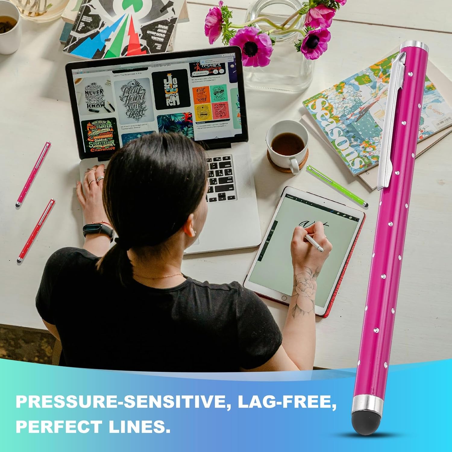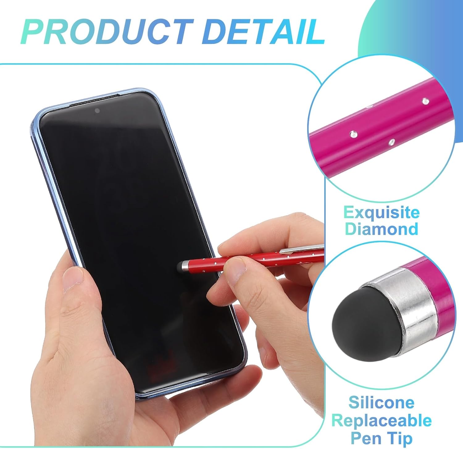 - Application: These shimmering crystal universal metal capacitive pens feature ultra-sensitive rubber tips made of soft silicone, ensuring gentle contact with screens to prevent scratches. Suitable for smooth writing, sketching, detailed drawing, precision work, coloring, note-taking, gaming, studying, and office tasks.