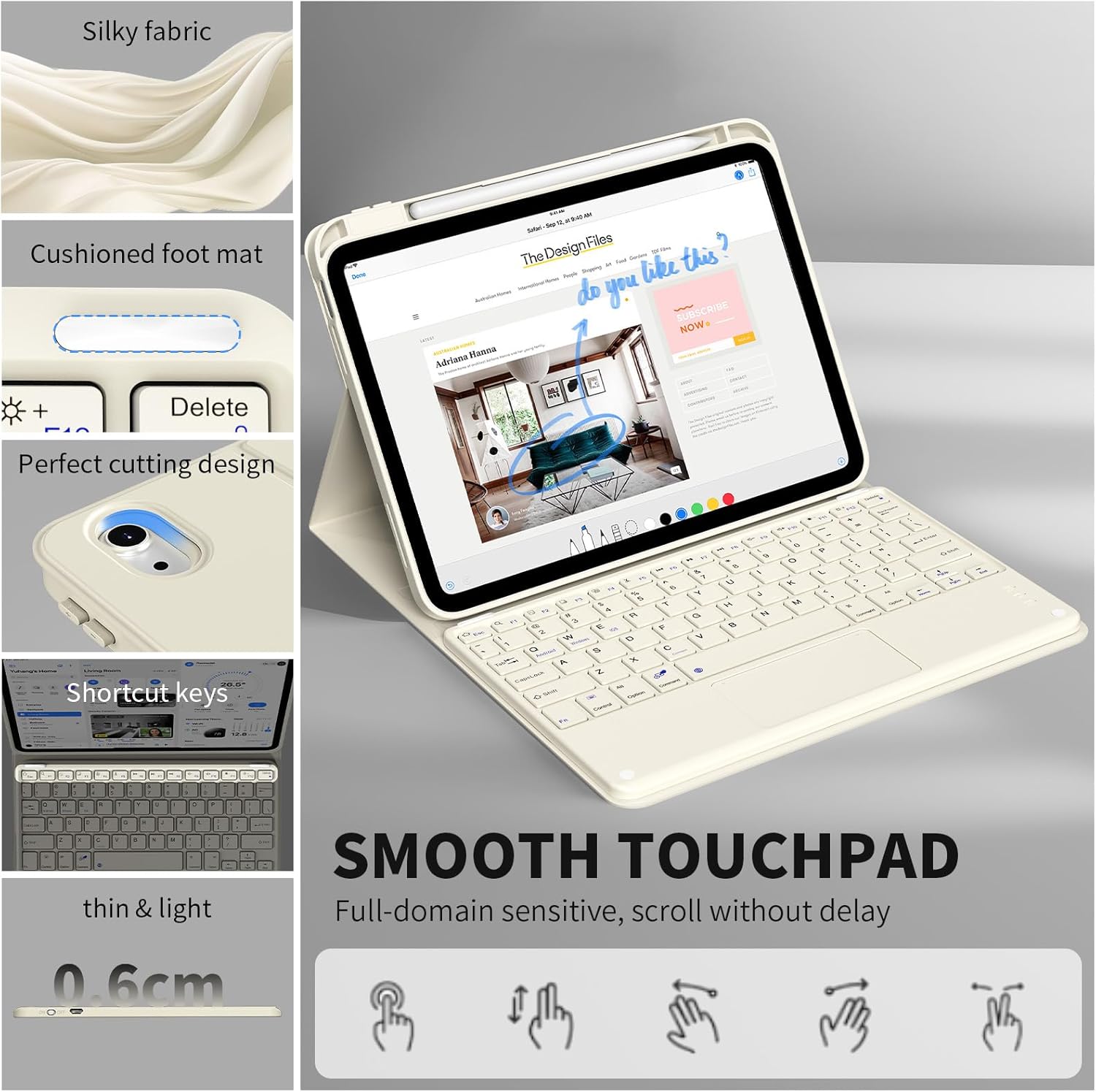 JKSML for iPad(A16) 11th/10th Generation Case with Keyboard (11/10.9 inch) 2025/2022, Wireless Detachable Bluetooth Cover with Trackpad, Flip Stand Case Thin with Pencil Holder, Cream White