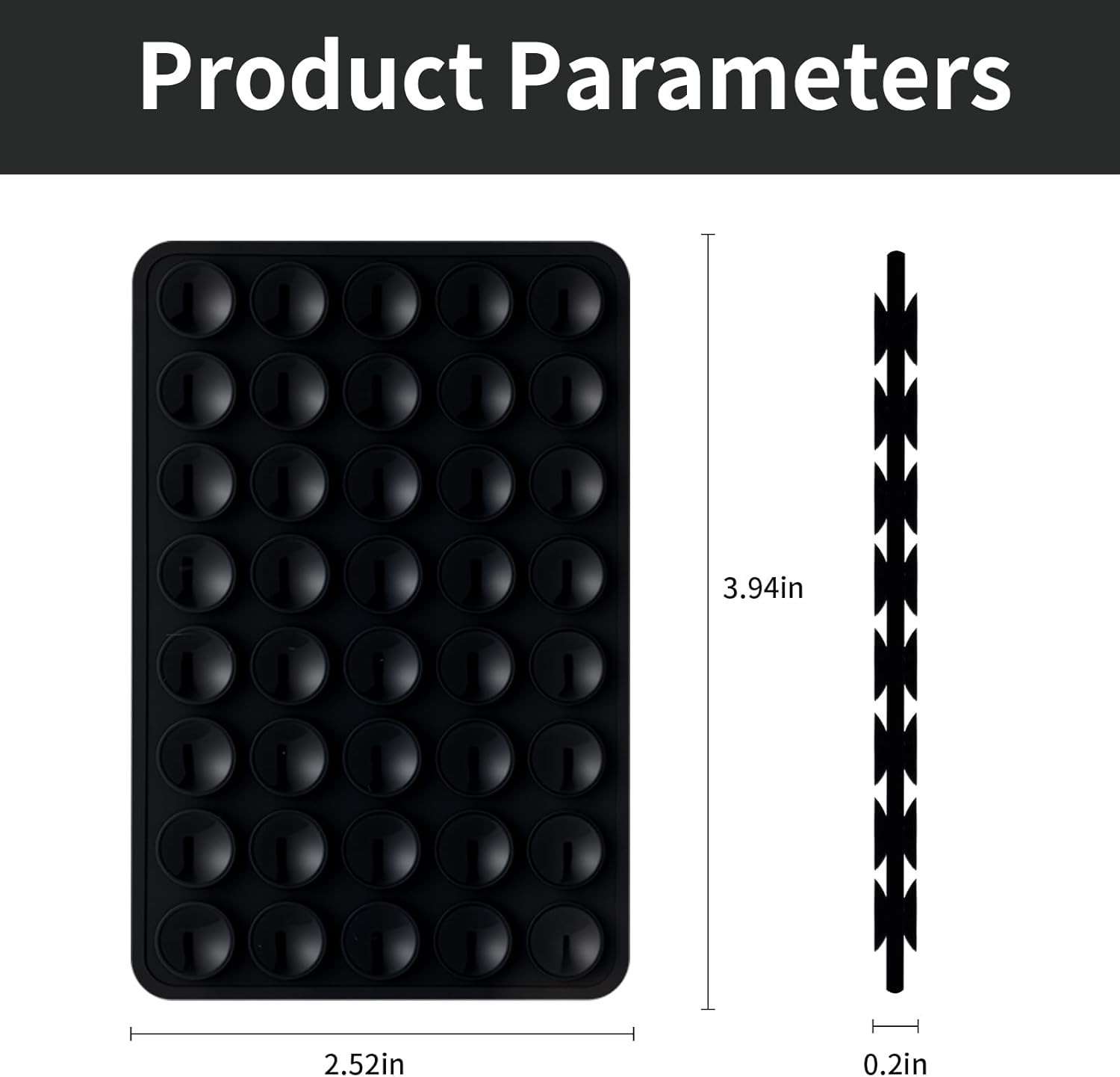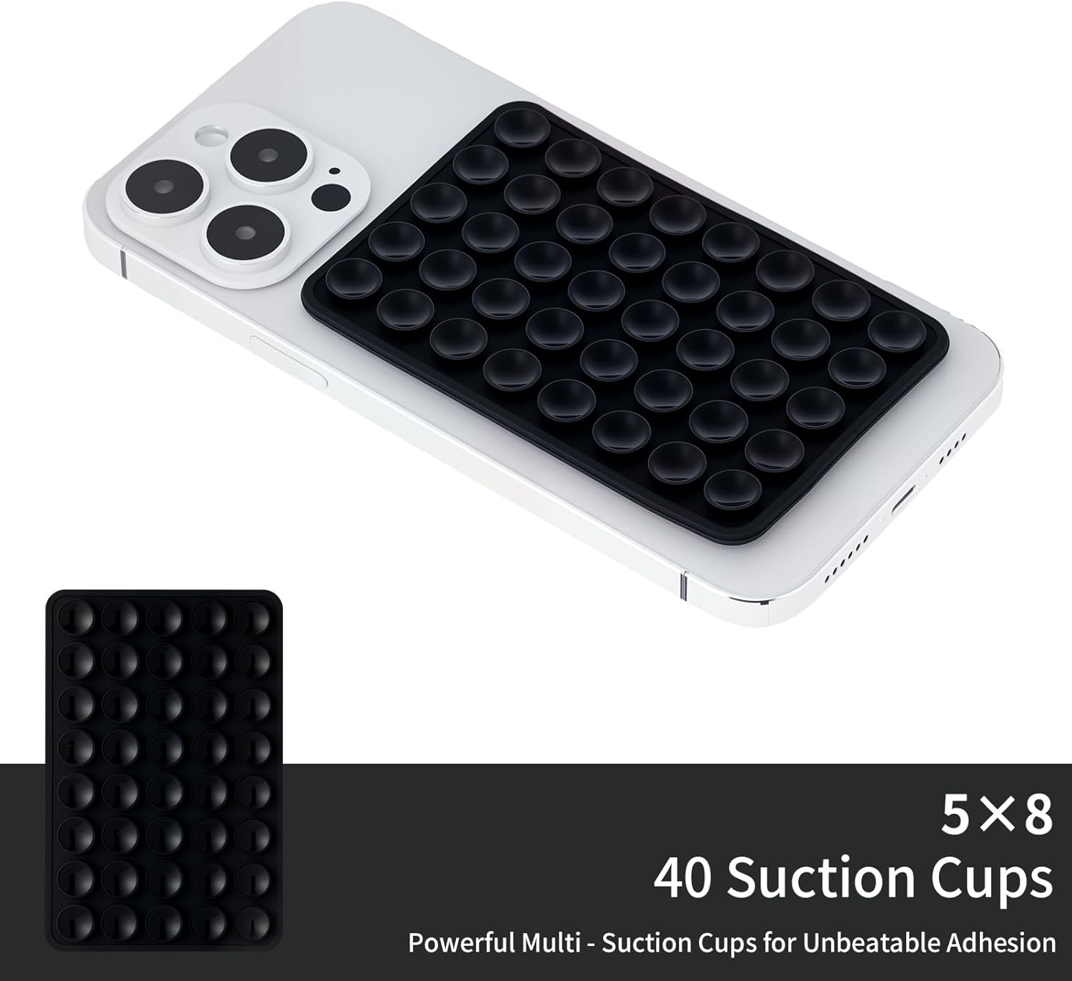 2 Pack Silicone Double-Sided Suction Grip – 40 Cups per Side, Strong Hold for iPhone, Galaxy, Pixel, Android – Hands-Free for Selfies & Videos (Black)