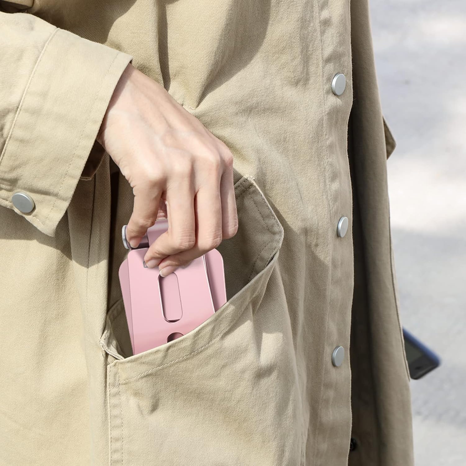 OMOTON Foldable Cell Phone Stand, C4 Portable Aluminum Phone Holder, Adjustable Phone Dock Cradle Compatible with iPhone 16/15/14/13 Pro Max, Samsung Galaxy, Small Tablets, All Smart Phones, Rose Gold