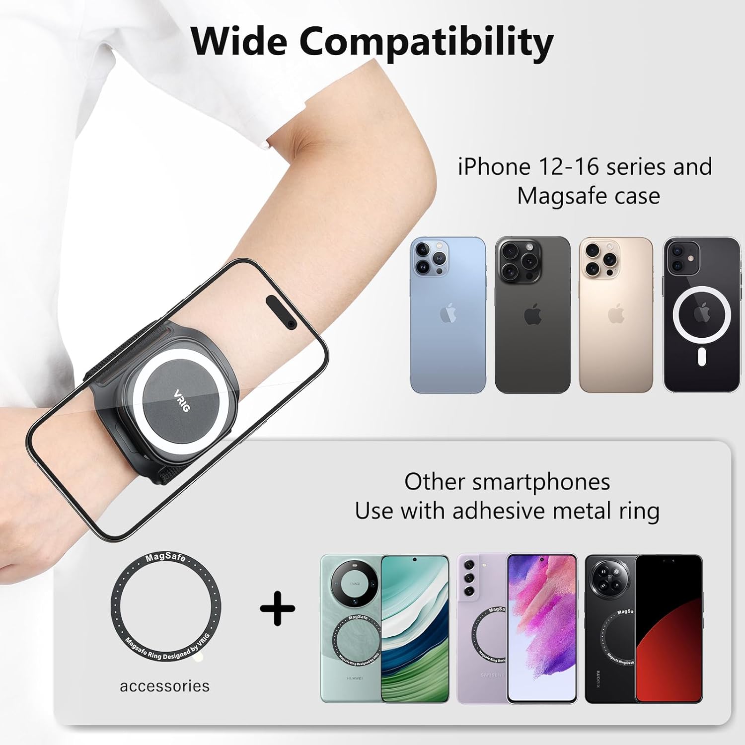 VRIG 360 Rotatable Magnetic Wristband Phone Holder, Armband Cell Phone Holder, Magnetic Phone Holder, Compatible with magsafe iPhone 16 15 14 13 12 Pro Max Plus Mini