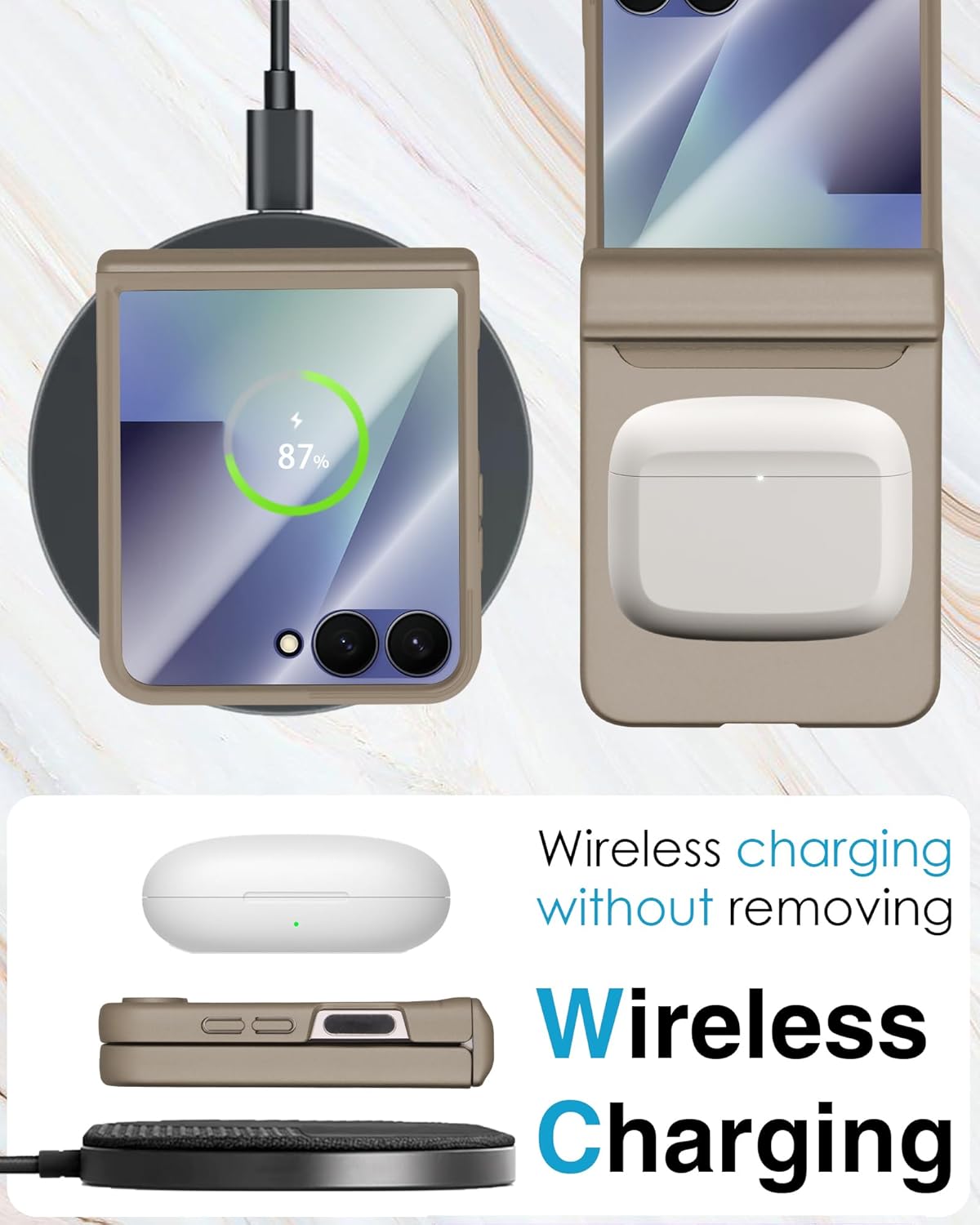 - [Slim and Lightweight Design] Our Galaxy Z Flip 7 case features an ultra-thin, lightweight profile that doesn't add any bulk to your phone. This Z Flip 7 case enhances your grip, reducing the likelihood of accidental drops while maintaining the phone's original elegance. Plus, this Z Flip 7 case supports wireless charging, so you never have to remove the case for charging.