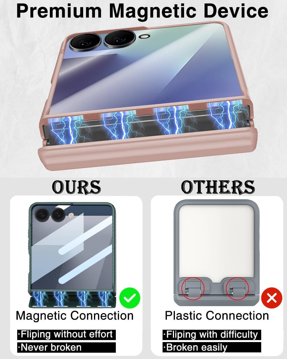 - [Advanced Hinge Protection]: Our Z Flip 7 case features an innovative hinge protection design specifically for the Galaxy Flip 7, providing complete protection from all angles. Our Z Flip 7 case is designed with a unique magnetic connection that won't be broken by impacts such as drops. Besides, our z Flip 7 case with unique design flips more smoothly without spring resistance.