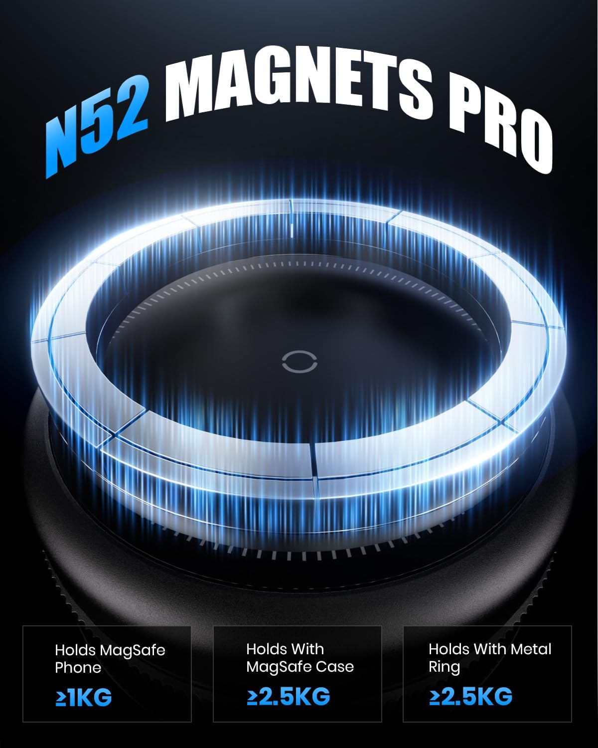 - 【Strengthened Grip, Steady Hold】The vacuum magnetic phone holder uses N52 magnets with 2800GF pull force and strong suction to lock your phone tightly in place. It stays secure even on bumps, sharp turns, and sudden stops. Mount it on smooth surfaces, or use the round base for textured surfaces.