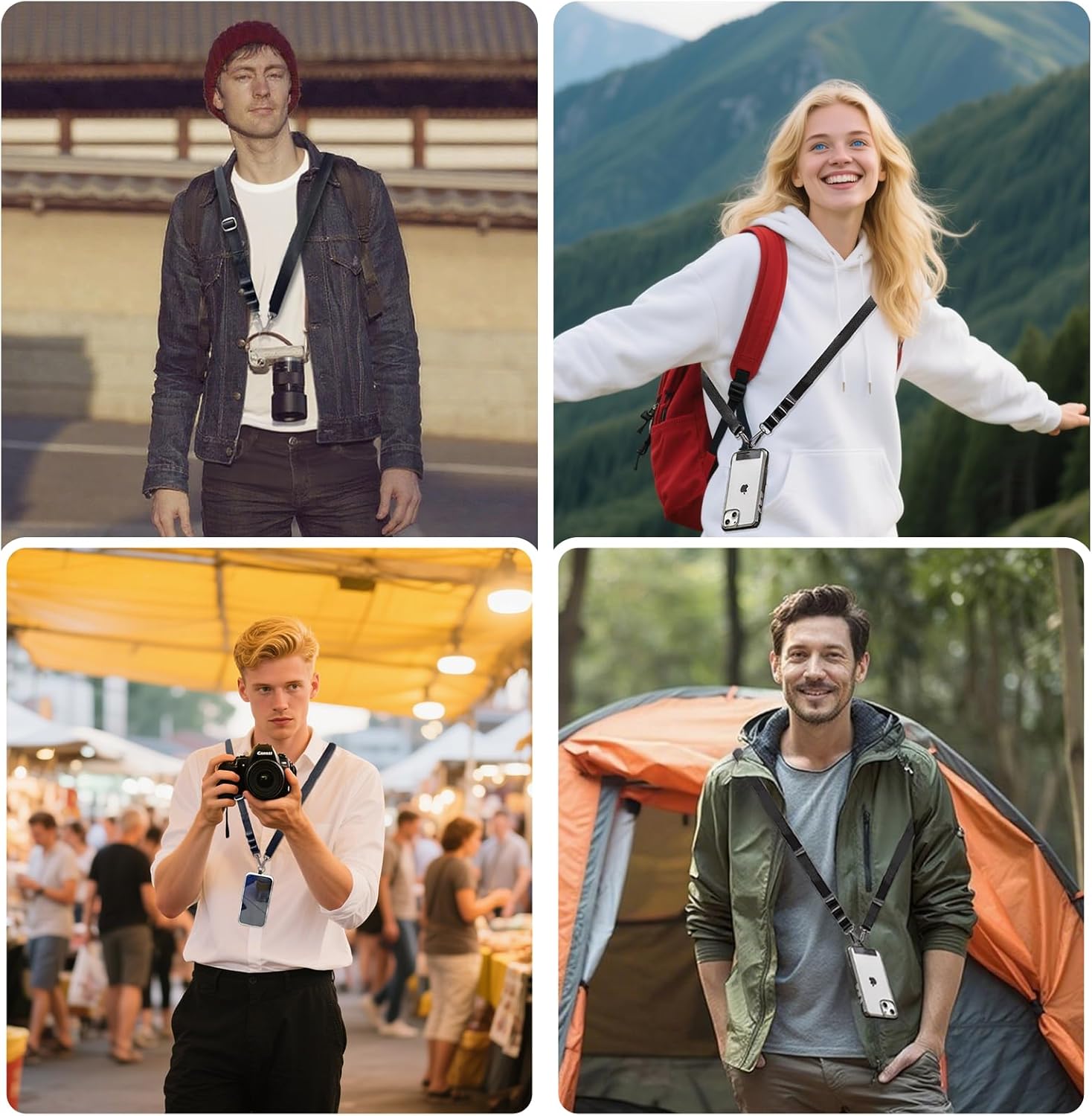 - Secure & Hands-Free β Durable nylon strap with a reinforced metal clip or carabiner attaches firmly to most phone cases, belts, or bags, keeping your phone accessible while freeing your hands for work or activities.