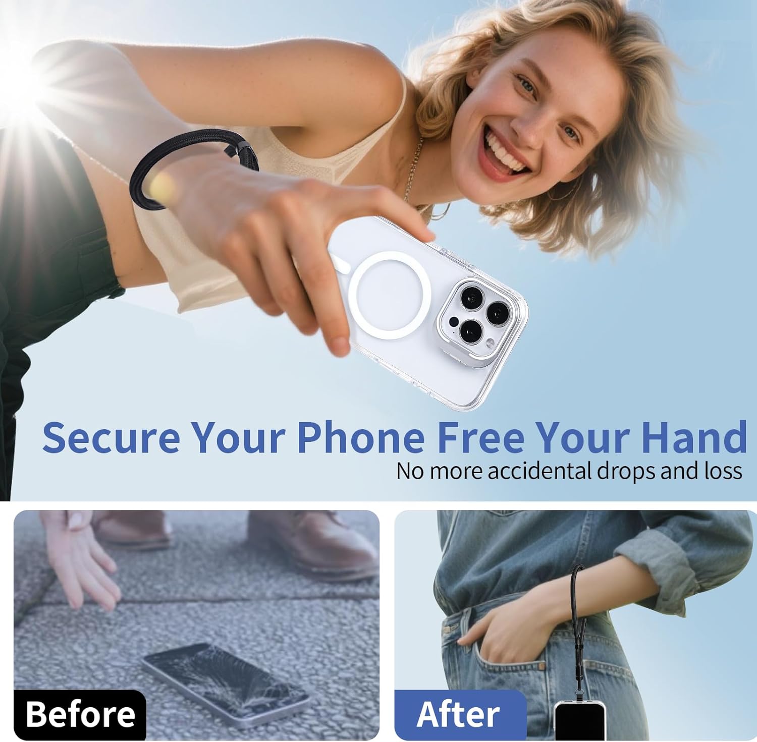 - 【Free Your Hands and Anti Theft】Whether you are shopping, traveling, hiking, cycling, taking photos, taking care of your baby or walking your dog, the phone lanyard can free your hand and ensure that you can able to access to your phone at any time,and keep your phone safe from theft.