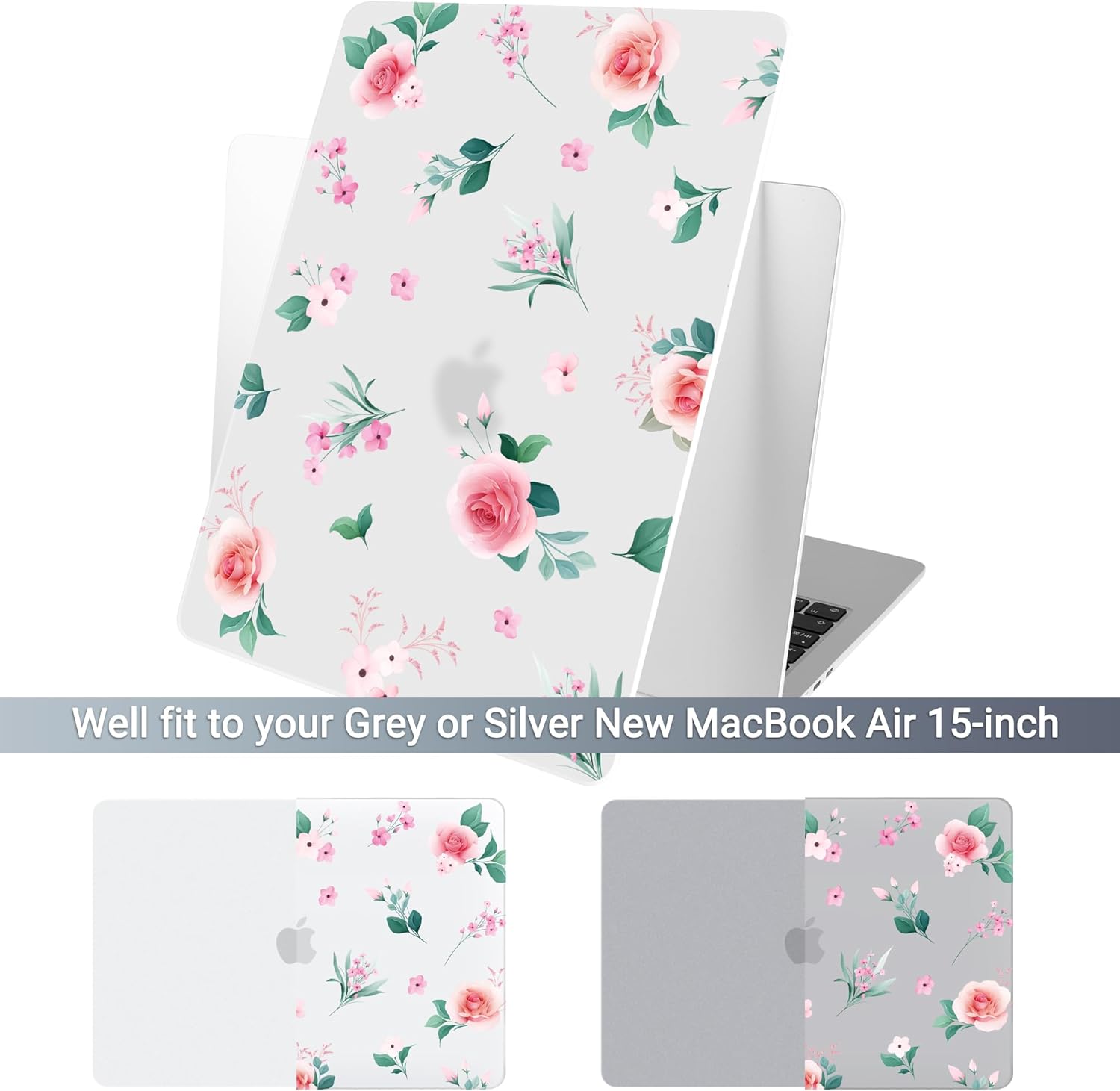 Batianda Premium Case for New MacBook Air 15 inch 2025 M4 2024 2023 with M3 M2 Chip, Floral Designed Protective Plastic Hardshell & Keyboard Cover & Screen Protector, Spring Flowers, Peach Rose