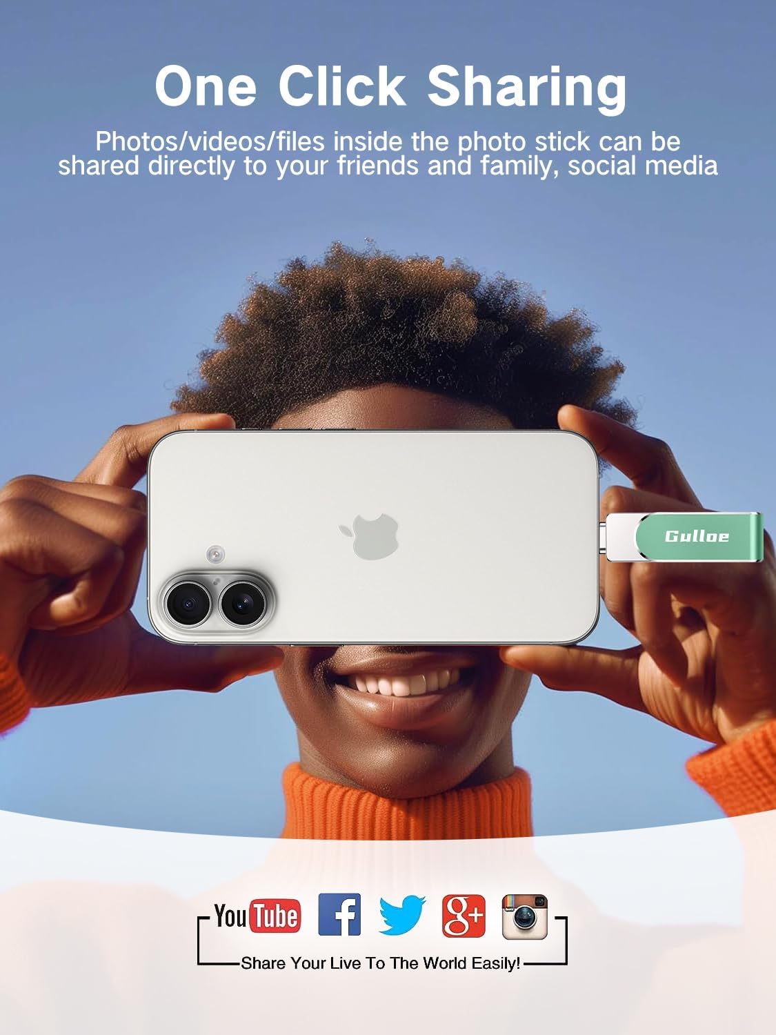 - 【Watch Movies, Photos and Play Music Directly From Phone Flash Drive】Store your favorite videos, audios and music on your iPhone's Photo Stick, then seamlessly plug and play on your iPhone or iPad anytime, anywhere. No more need for Internet or WiFi. This iPhone storage device plays videos in many different formats. Pictures stored on the Phone storage device also support different formats. Great way to store all your pictures and videos on an phone external storage device.