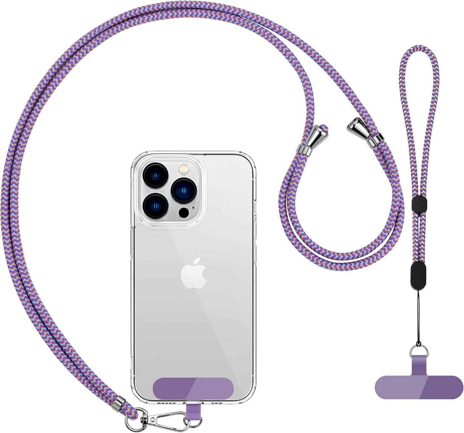 CACOE Cell Phone Lanyard Universal Crossbody Multifuctional Lanyard Compatible with Most Smartphones (Purple Blue, 30"(Neck Strap×1)+8"(Wrist Strap×1))