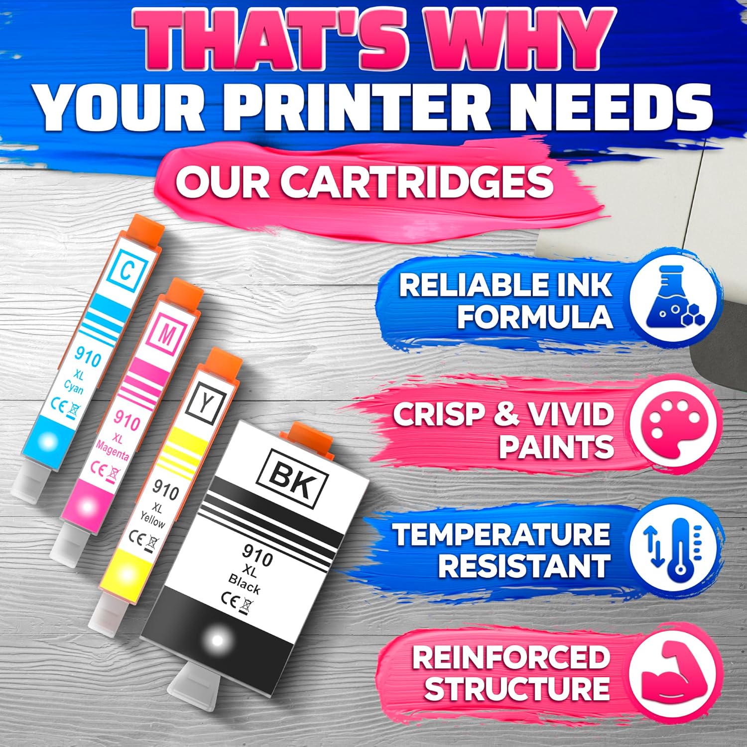 - Quality 910 XL Ink Printer Cartridges: Made with quality ink, these print cartridges help prevent head clogging and reduce damage to the printer head, ensuring optimal printing performance
