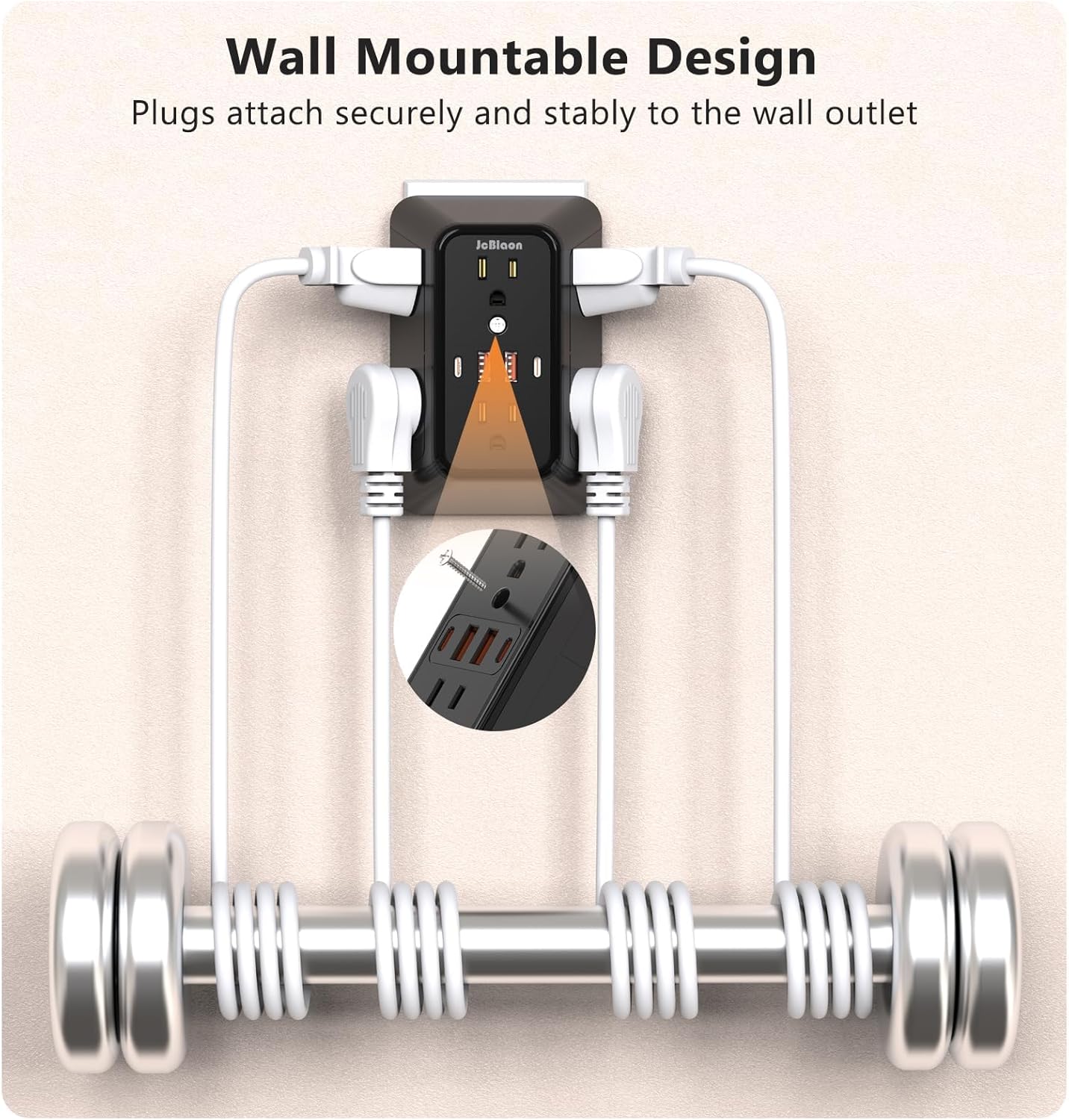- 【Wall socket surge protector】This multi plug wall plug has 1050 joules of surge protection, which can protect your TV, computer, laptop or other appliances from the impact of surges, ensuring your electrical safety and giving you peace of mind.