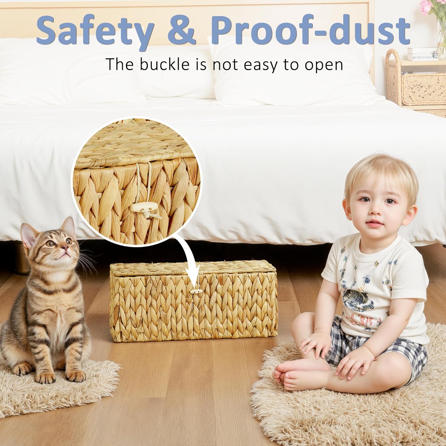 efluky 2 Pack Hand-woven Cable Management Box with Lid, Water Hyacinth Open Slots Cord Box to Hide USB Wire, Power Strip & Charger for Home & Office and Dorm, Natural