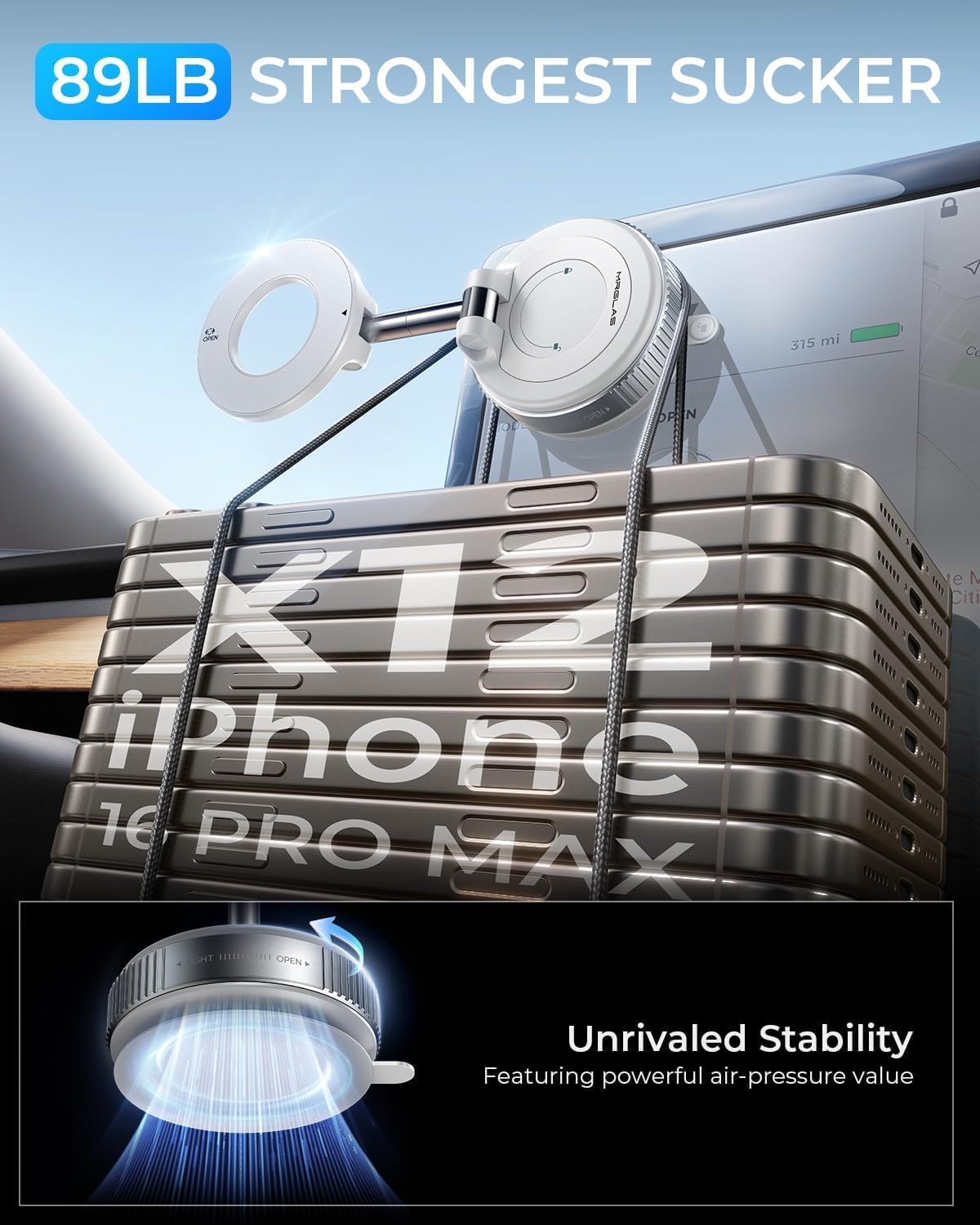 MRGLAS 2025 Upgraded Vacuum Magnetic Phone Holder, for Magsafe Suction Cup Phone Mount Car Truck Accessories for Women Men [89+LBS Suction & 2800gf Magnetic], 360° Adjustable