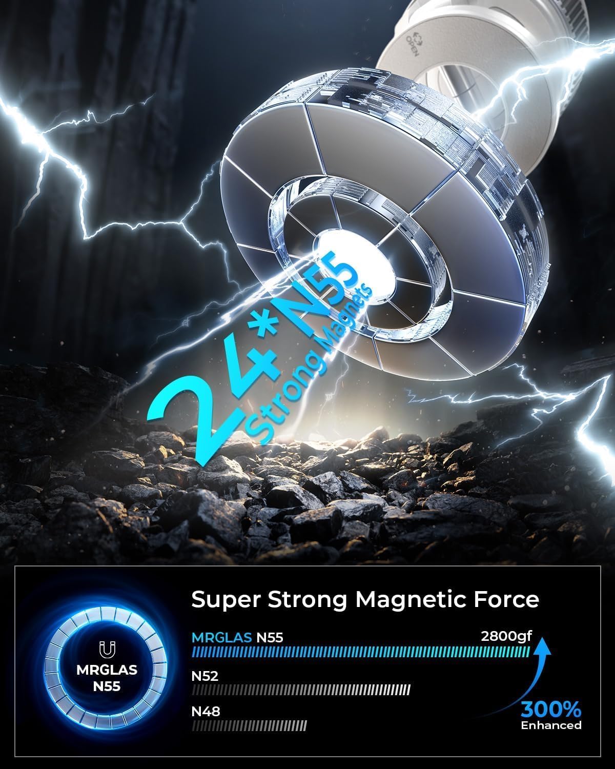 - [Supercharged Magnetic Force for Ultimate Stability]: Equipped with 24 high-performance N55 magnets, this phone mount boasts magnetic strength 240% stronger than standard magnets, providing up to 2800gf of magnetic force. It can securely hold devices as heavy as the iPhone 16 Pro Max. After passing 6,000 vibration tests and extreme road simulations, you can count on your phone to stay firmly attached, even in challenging conditions. The precise magnetic design ensures strong adhesion without interfering with phone signals, giving you uninterrupted navigation and clear calls