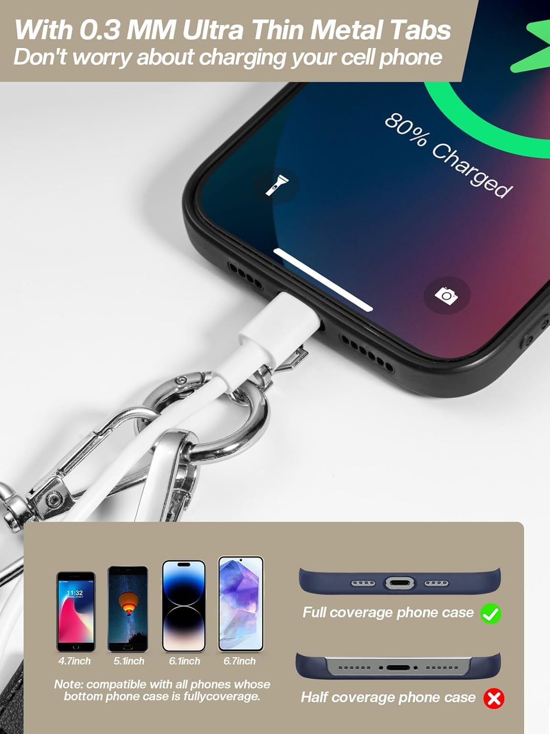- Design Craftsmanship: This clip and go phone strap with wallet has exquisite workmanship, we have paired it with 2 pcs ultra-thin 0.3mm alloy aluminum tabs, it will not hinder the normal charging of your cell phone during use. the joint features nylon connecting cloth, which is not easy to fray and is more durable, the unique D-shaped metal ring design ensures you can DIY any object on this phone strap, the ID window-fixing strap design prevents your ID card from shifting and ensures visibility.
