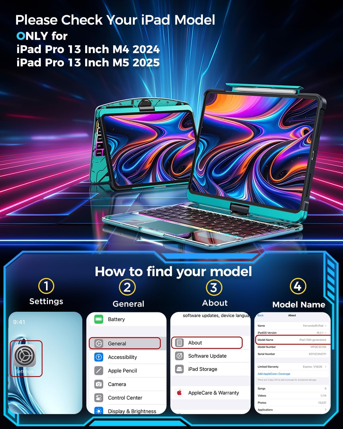 - Precise Fit for Your iPad Pro 13: Designed exclusively for iPad Pro 13 inch 2024 M4 and iPad Pro 13 inch M5 2025 . Please double-check your iPad's model number on the back cover to ensure a perfect fit