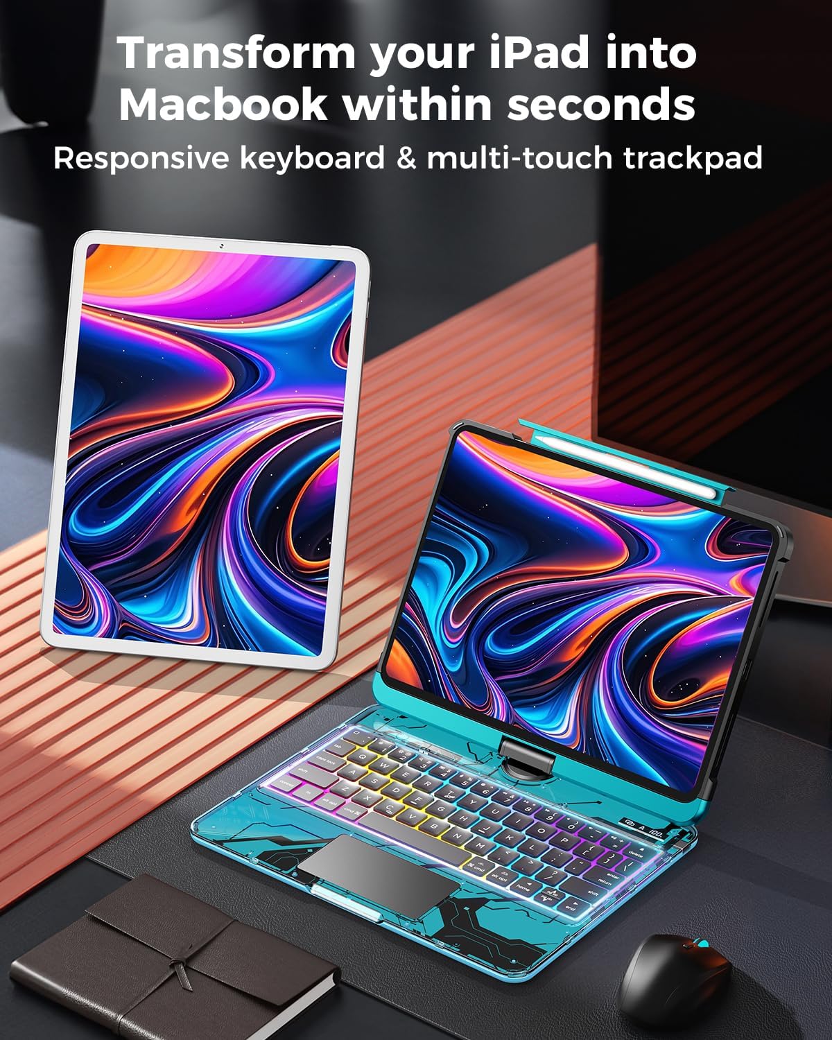 - 7-Color RGB Backlit Keyboard: Your iPad pro 13-inch m5 2025 /2024 m4 workflow with 7 colors and 3 brightness levels for effortless typing in any light. Enjoy quiet, responsive scissor-switch keys and convenient iPadOS shortcuts for enhanced productivity. The flexible magnetic pencil holder keeps your Apple Pencil secure
