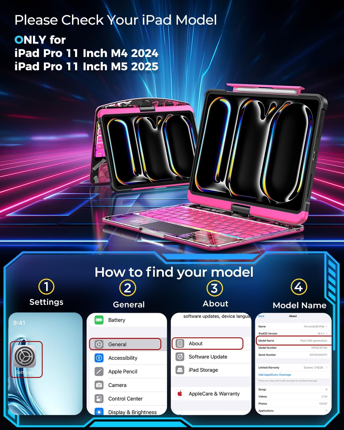- Precise Fit for Your iPad Pro 11: Designed exclusively for iPad Pro 11 inch 2024 M4 and iPad Pro 11 inch M5 2025 . Please double-check your iPad's model number on the back cover to ensure a perfect fit