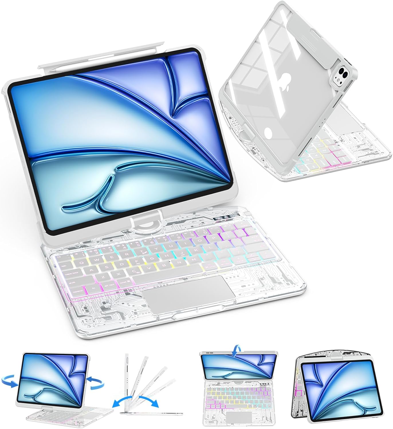 SIEBITU Clear Wireless Keyboard Case for iPad Air 11-inch (M3 2025/M2 2024) & iPad Pro 11-inch 4th 3rd 2nd 1st Gen, 7-Color Backlit with Multi-Touch Trackpad for 10.9" iPad Air 4th/5th Gen, White