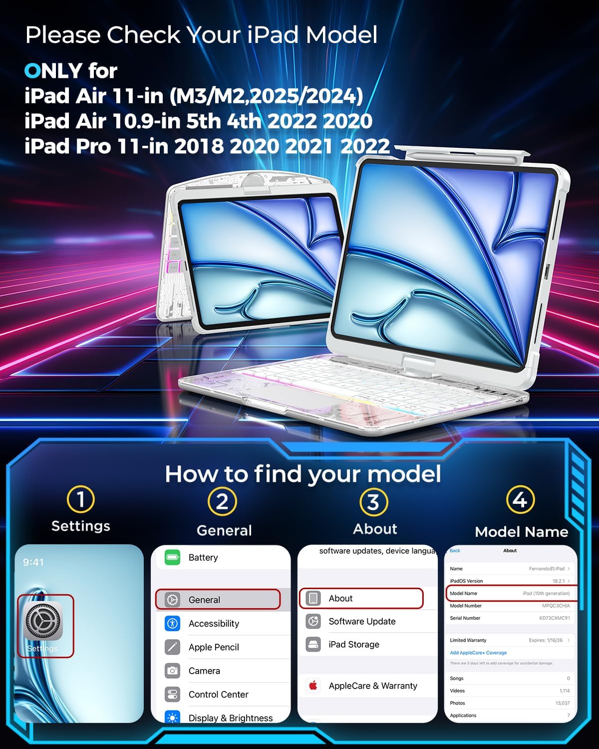 - Compatible Devices : fo iPad Air 11-inch M3 2025,iPad Air 11-inch M2 2024,iPad Air 5th/4th 10.9-inch,iPad Pro 11-inch 2018/2020/2021/2022 fo iPad Air 11-inch M3 2025,iPad Air 11-inch M2 2024,iPad Air 5th/4th 10.9-inch,iPad Pro 11-inch 2018/2020/2021/2022