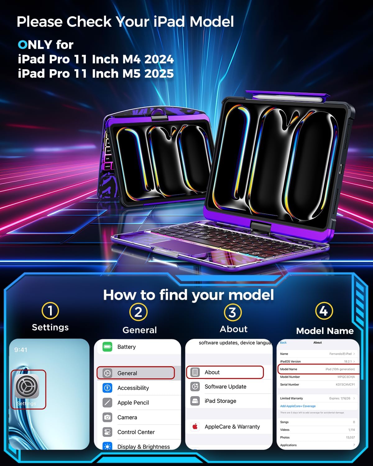 - Precise Fit for Your iPad Pro 11: Designed exclusively for iPad Pro 11 inch 2024 M4 and iPad Pro 11 inch M5 2025 . Please double-check your iPad's model number on the back cover to ensure a perfect fit
