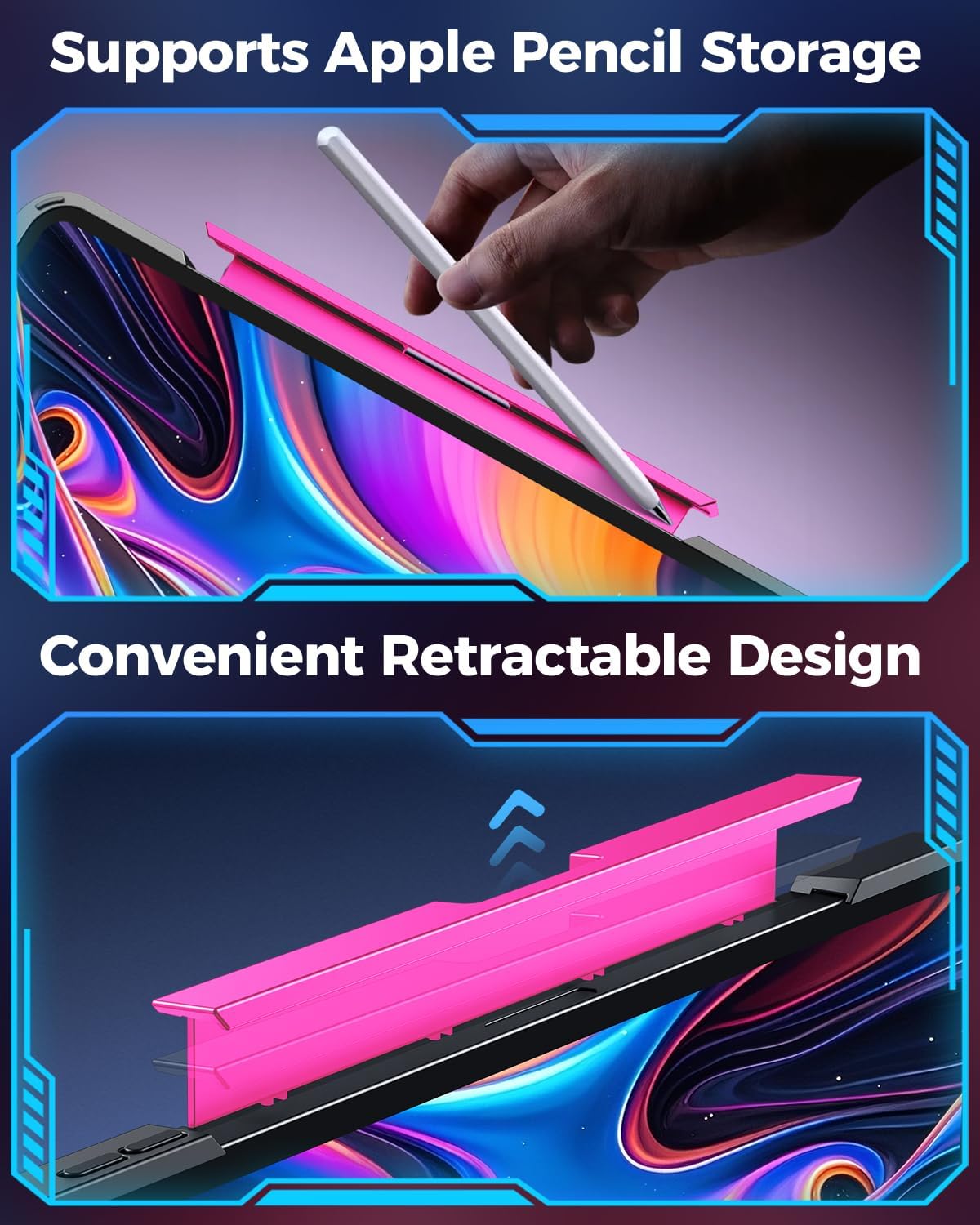 - 7-Color RGB Backlit Keyboard: Your iPad pro 13-inch 2025 m5/2024 m4 workflow with 7 colors and 3 brightness levels for effortless typing in any light. Enjoy quiet, responsive scissor-switch keys and convenient iPadOS shortcuts for enhanced productivity. The flexible magnetic pencil holder keeps your Apple Pencil secure