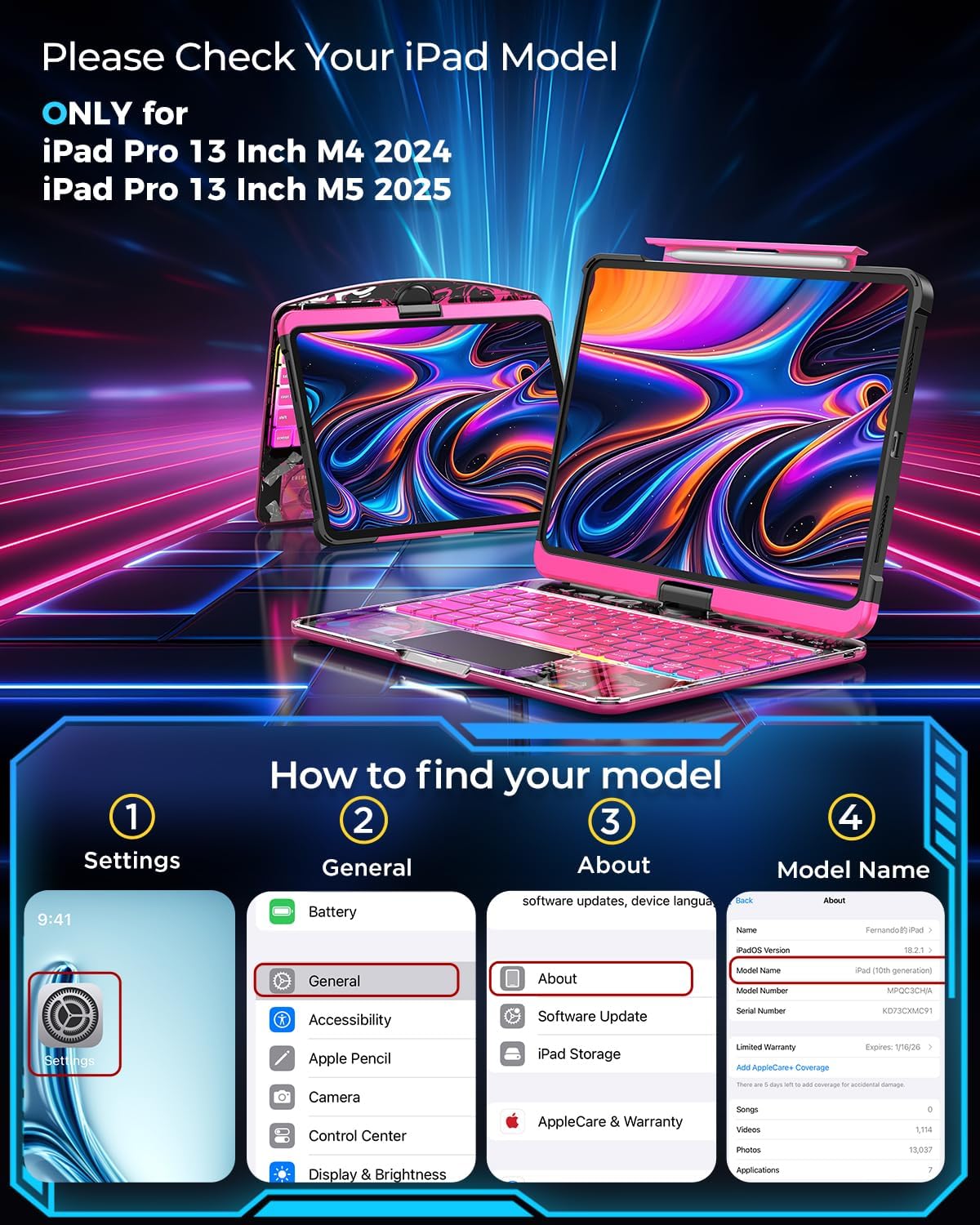 - Precise Fit for Your iPad Pro 13: Designed exclusively for iPad Pro 13 inch 2024 M4 and iPad Pro 13 inch M5 2025 . Please double-check your iPad's model number on the back cover to ensure a perfect fit
