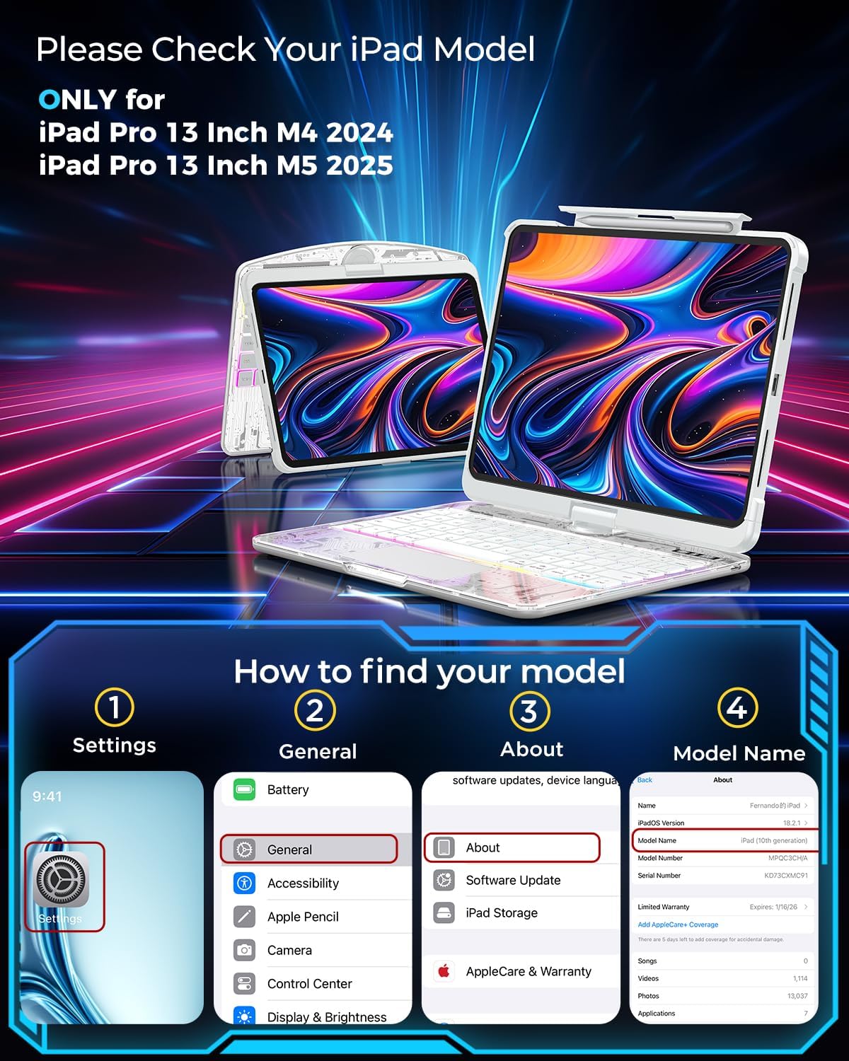 - Precise Fit for Your iPad Pro 13: Designed exclusively for iPad Pro 13 inch 2024 M4 and iPad Pro 13 inch M5 2025 . Please double-check your iPad's model number on the back cover to ensure a perfect fit