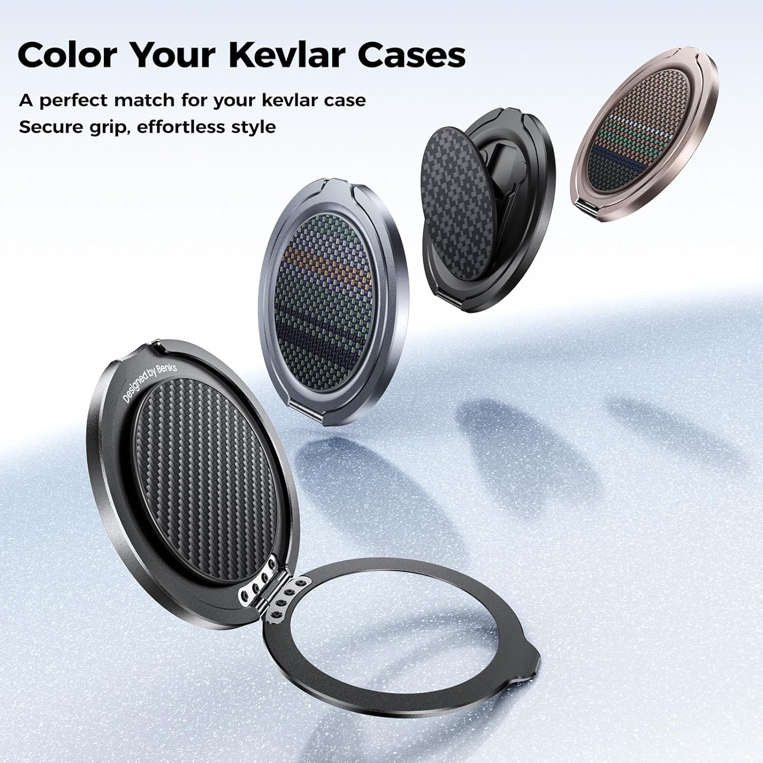 - A Pop of Style, Your Way: Available in Dawn Gold, Aurora, 600D Black, and Prestige—each finish designed to complement your phone and elevate your everyday carry. Pair it with a matching BENKS Kevlar case to complete your MagSafe grip setup—sleek, strong, and fully coordinated.