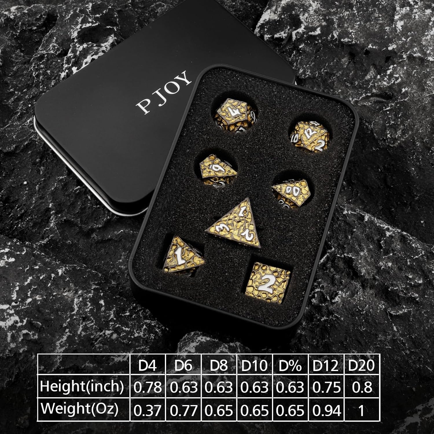 PJOY Metal D&D Dice Set for Dungeons and Dragons Dice with Case Meteorite Black Gold Glitters 7PCS 16mm Role Playing Cool DND Gifts for Players DM Board Game Masters