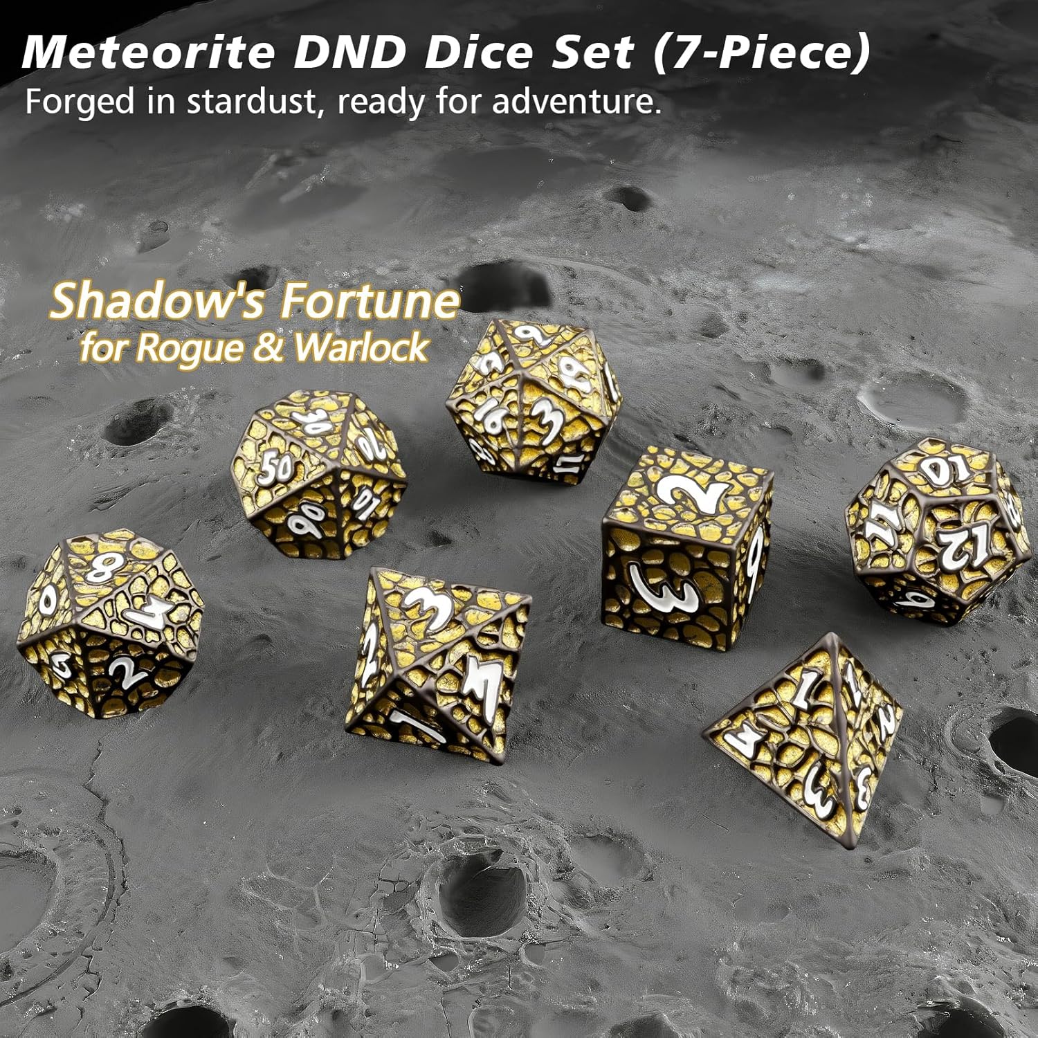 - Meteorite Themed Dice Design: These metal DND dice set are crafted with a unique meteorite star design inspired by meteor impacts and space energy. Each die shows realistic cracks and a bold meteorite look, giving your dnd game a cool, sci-fi feel