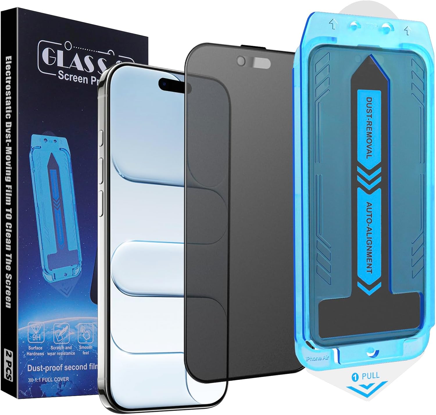 2-Pack Matte Privacy Screen Protector for iPhone Air 6.5-inch, 9H Tempered Glass, Full Coverage, Anti-Fingerprint, Auto Dust-Elimination, No Bubble, Easy Installation
