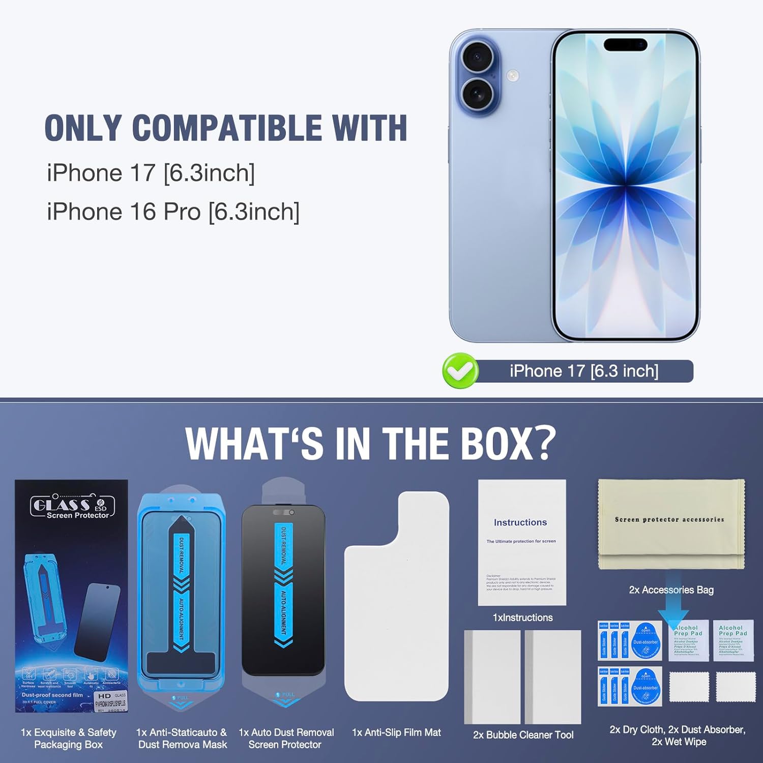 - Sensitive Touch & Seamless Compatibility: Enjoy a fully compatible fit with your iPhone 17, iPhone 16 Pro, offering no-lag touch sensitivity, full case friendliness, and a smooth, seamless install for long-lasting screen protection