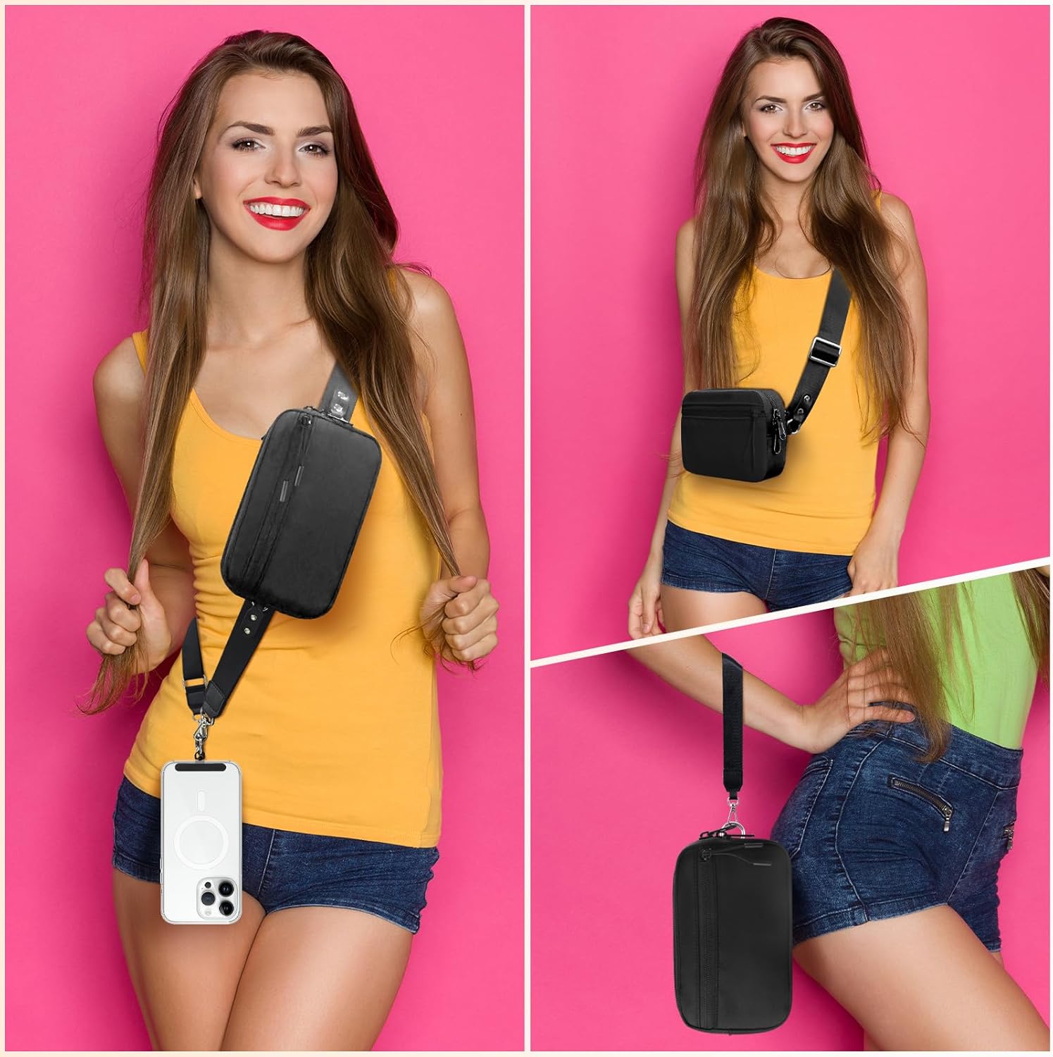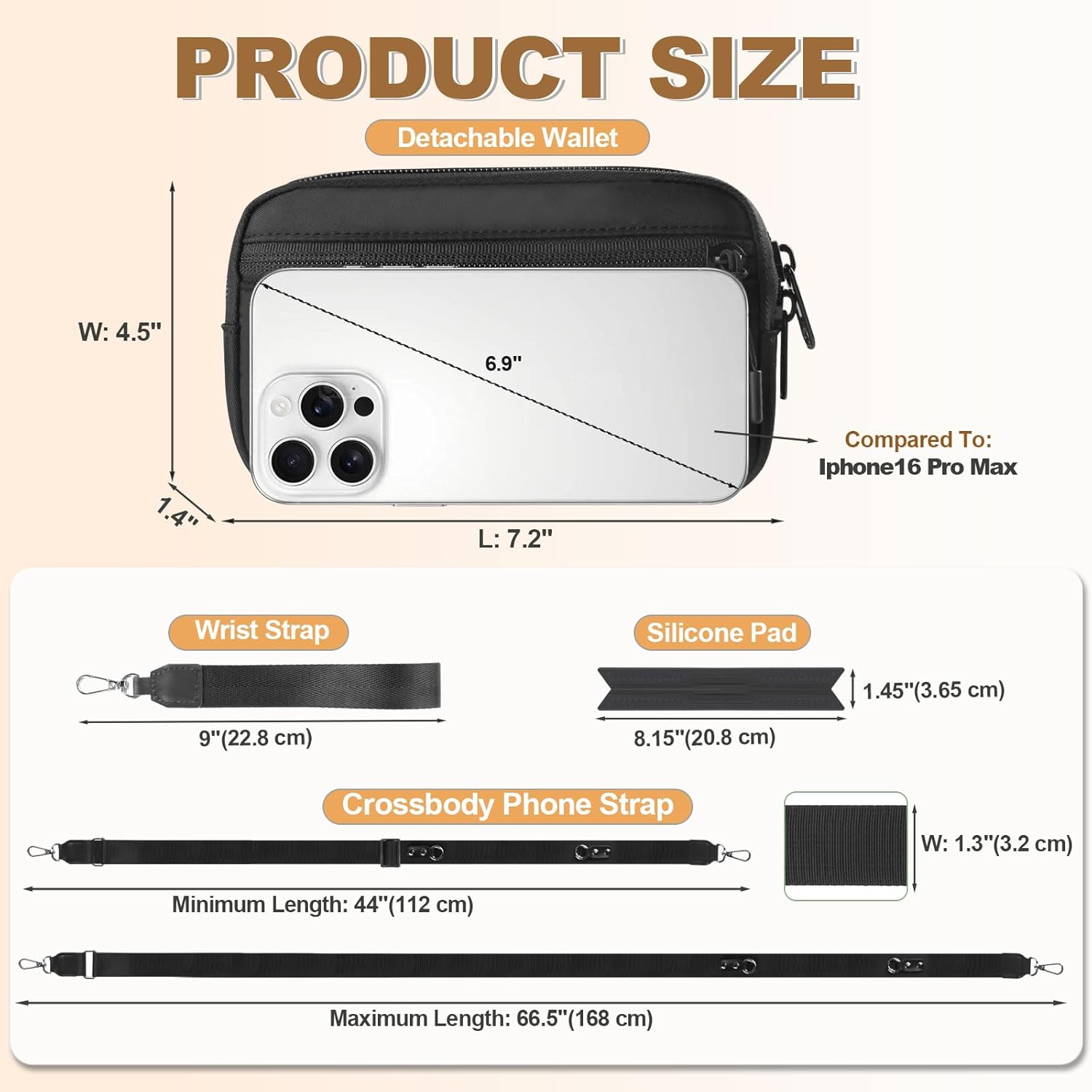 - Customizable Fit for Everyone: This phone strap crossbody is crafted from premiun double-layer nylon, it can be freely adjusted from 44 to 66.5 inches, and features a comfortable 1.3-inch width, providing an ideal fit for all body types - whether you're tall or short, slender or robust. the soft-touch meterial ensures gentle comfort against your skin, while the removable silicone pad ensures all-day comfort when worn crossbody.