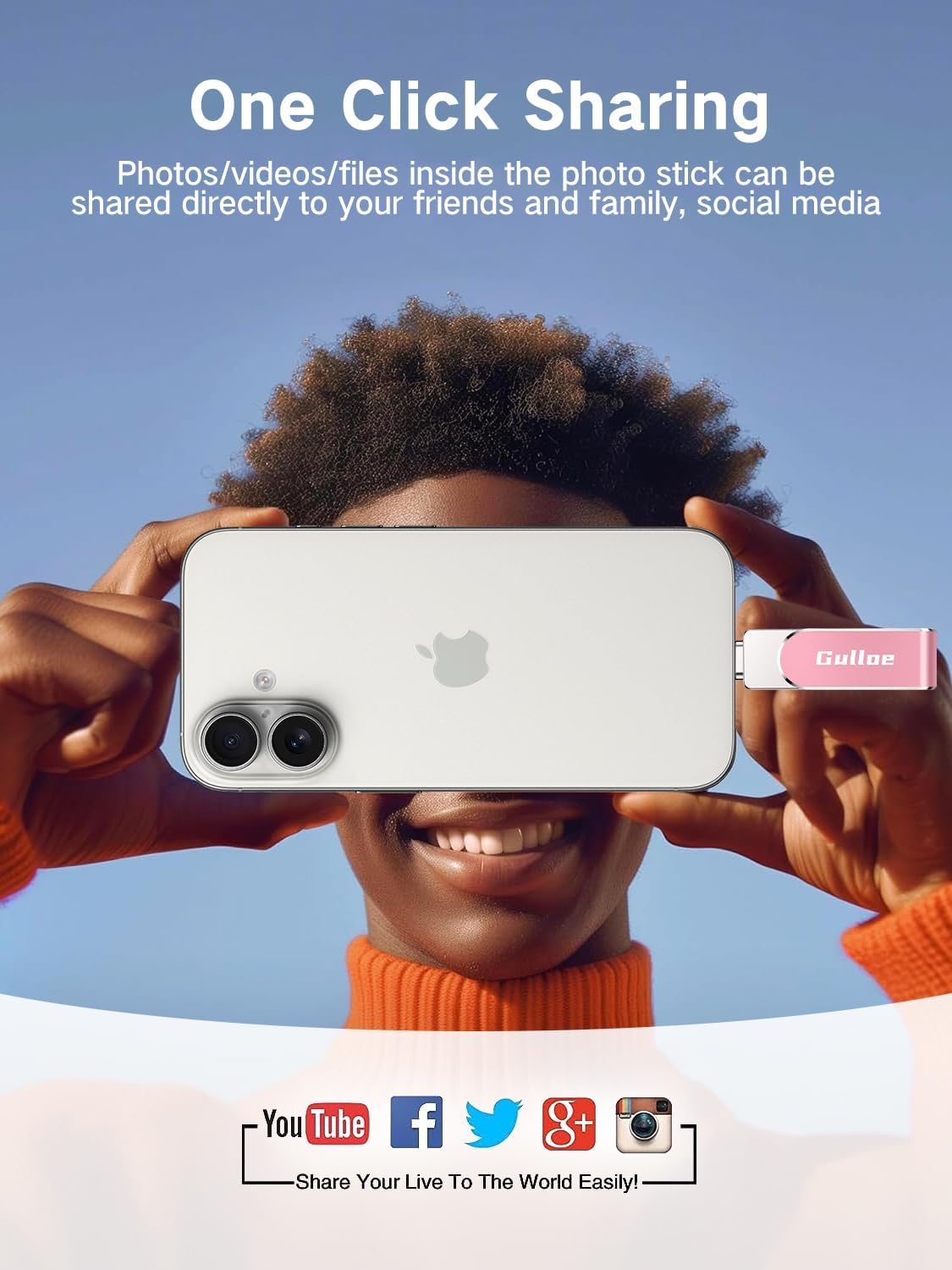 - 【Watch Movies, Photos and Play Music Directly From Phone Flash Drive】Store your favorite videos, audios and music on your iPhone's Photo Stick, then seamlessly plug and play on your iPhone or iPad anytime, anywhere. No more need for Internet or WiFi. This iPhone storage device plays videos in many different formats. Pictures stored on the Phone storage device also support different formats. Great way to store all your pictures and videos on an phone external storage device.