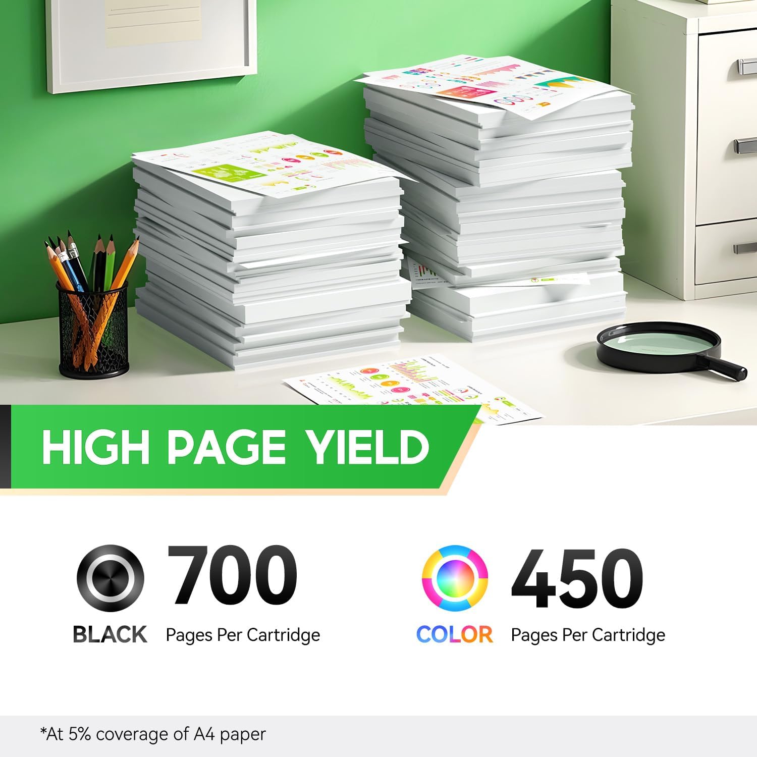 - Large Capacity: 700 pages per 67xl black ink cartridge, 450 pages per 67xl color ink cartridge at 5% coverage