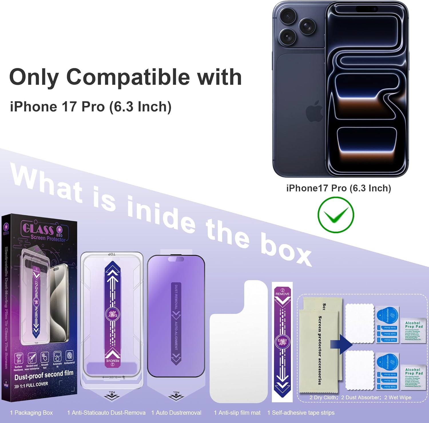 - Screen Protector Compatible with iphone 17 pro: Designed for your iphone 17 pro screen protection 100% touch accurate. Not compatible with other iPhone models