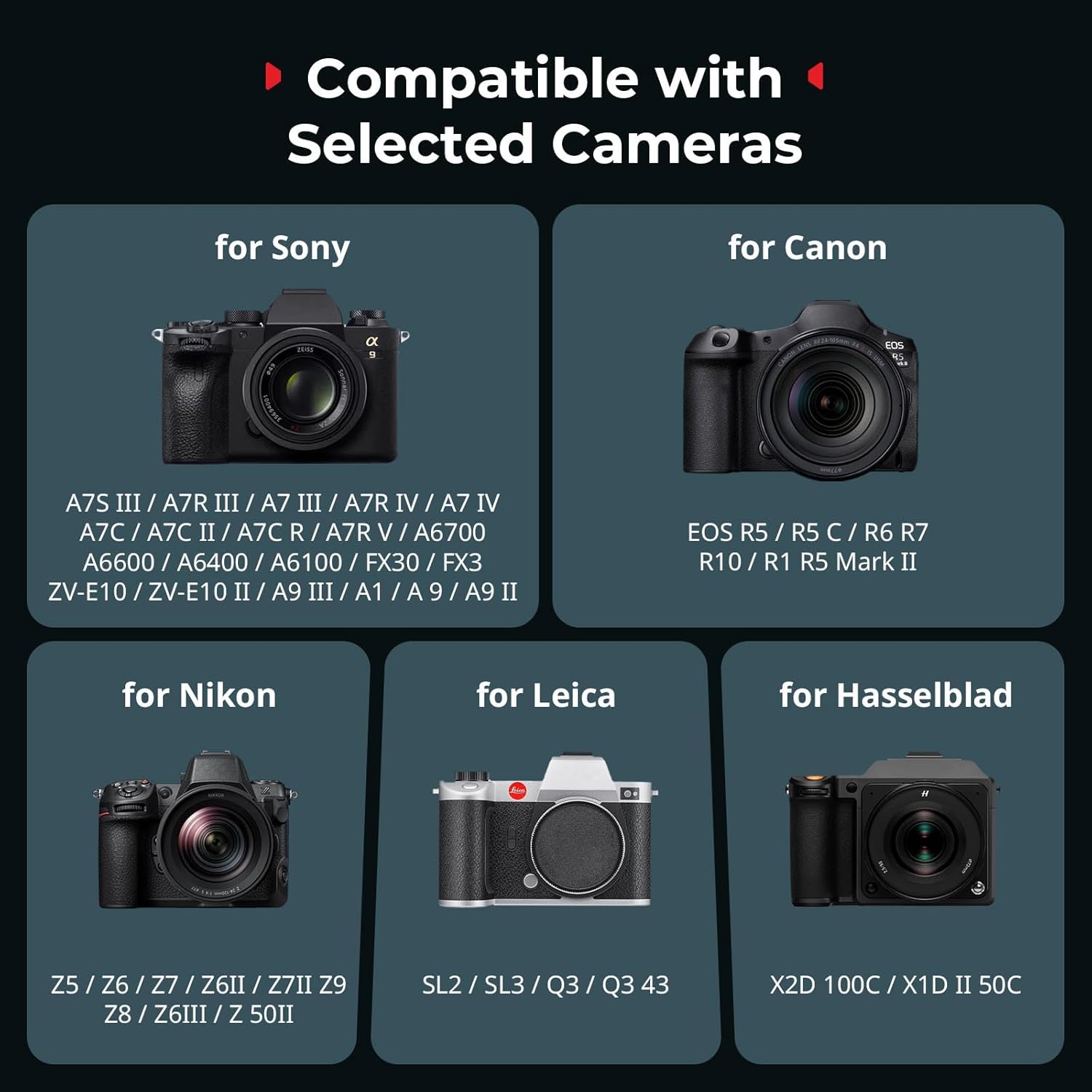 - 【Compatible with Selected Cameras】The plate for AirTag features built-in 1/4"-20 Screw, which is suitable for Sony A7 III / A7R IV / A7 IV / A7C / A7C II / A6700 / A6600 / A6400 / FX30 / FX3 / ZV-E10, for Canon EOS R5 / R5 C / R5 Mark II, for Nikon Z5 / Z6 / Z7 / Z6II, for Panasonic GH5 / GH5II / GH5S / GH6, for Leica SL2 / SL3 / Q3, for Hasselblad X2D 100C / X1D II 50C and more cameras models.