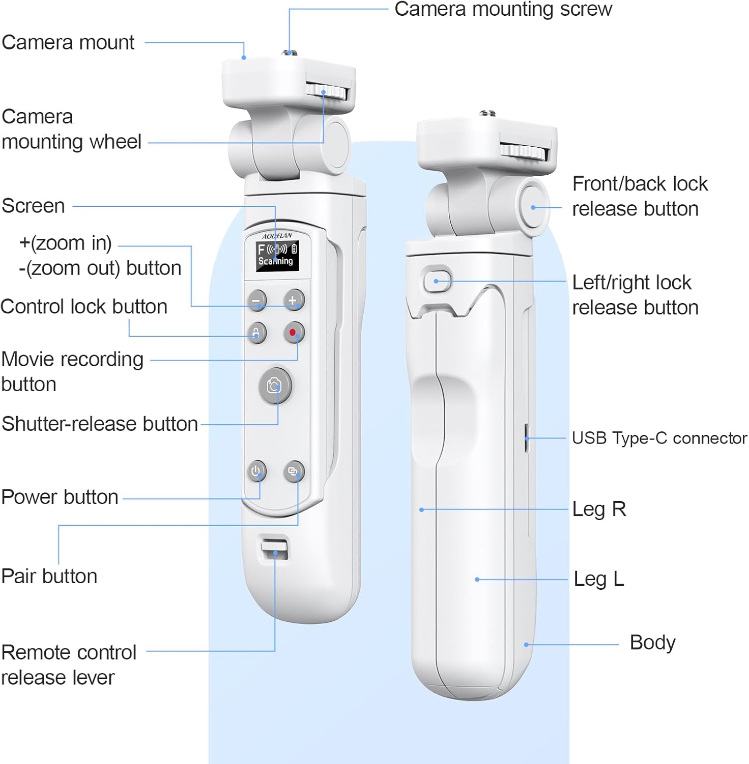 - Multi Functional Wireless Remote Control: The AODELAN shooting tripod is equipped with a wireless remote control, which can be remotely controlled without touching the camera.This remote control supports shooting still photos, short videos, Bulb shooting, continuous shooting, self timer, zoom and press the button halfway to focus (the camera needs to be set to AF (auto focus) mode). The zoom function is available only for power zoom lenses and when the camera supports remote zoom. It has a 360 ° omni-directional remote control, and the remote control distance can reach 10m/32.8 feet. Please adjust the camera to the appropriate mode.