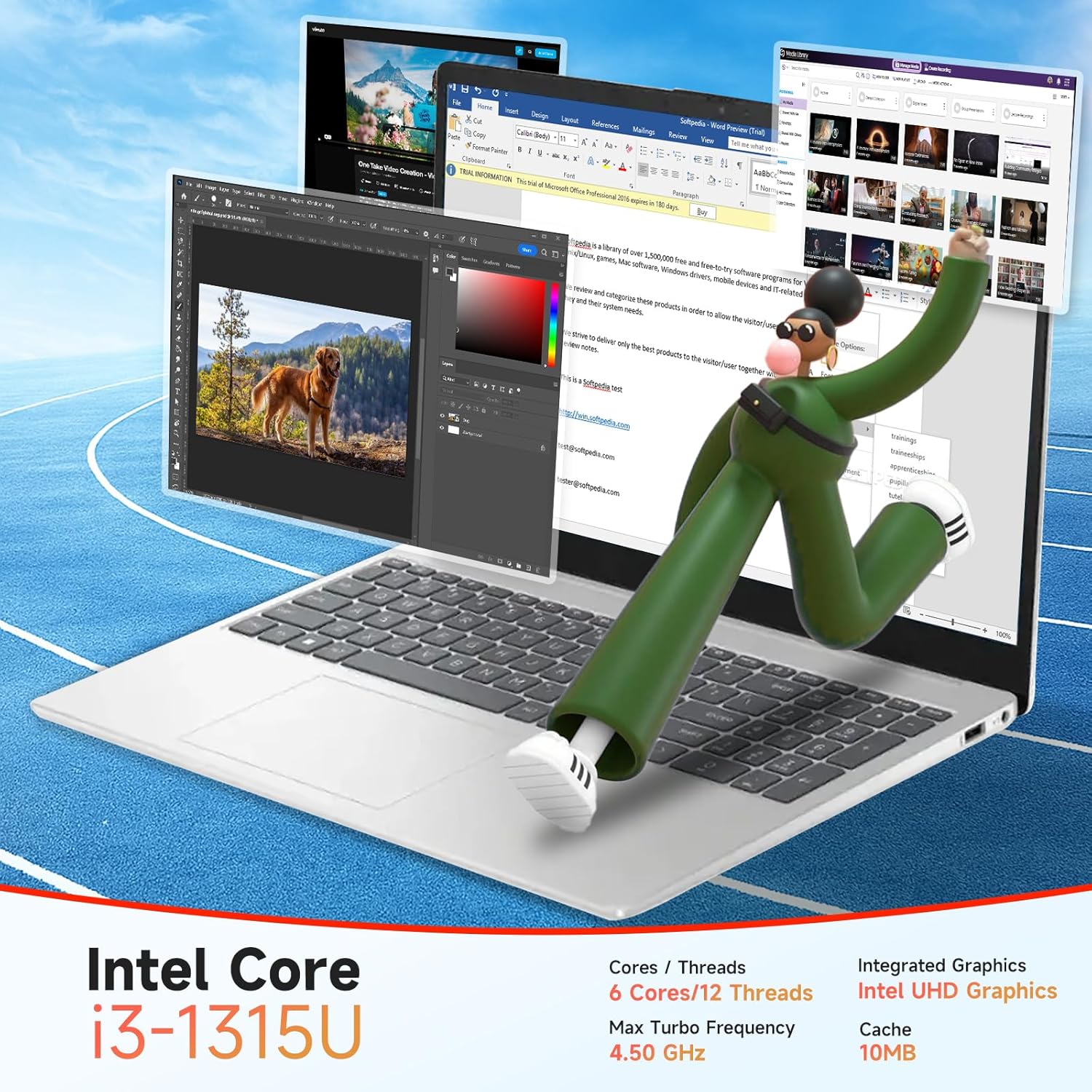 - 💻 Powerful Performance with Intel Core i3-1315U Powered by the Intel Core i3-1315U processor with 6 cores, this laptop delivers speeds up to 4.5GHz. Perfect for students and professionals, it handles everything from document editing to streaming with smooth, reliable performance.