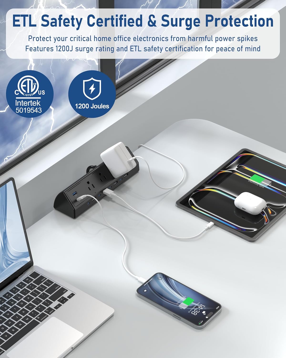 - Versatile for Any Room & Setup:More than just a desk organizer! The flexible clamp easily attaches to nightstands, workbenches, kitchen counters, or standing desks. Itโs the perfect solution for bedroom charging without cable clutter, a tidy workshop setup, or adding power anywhere an outlet is out of reach.