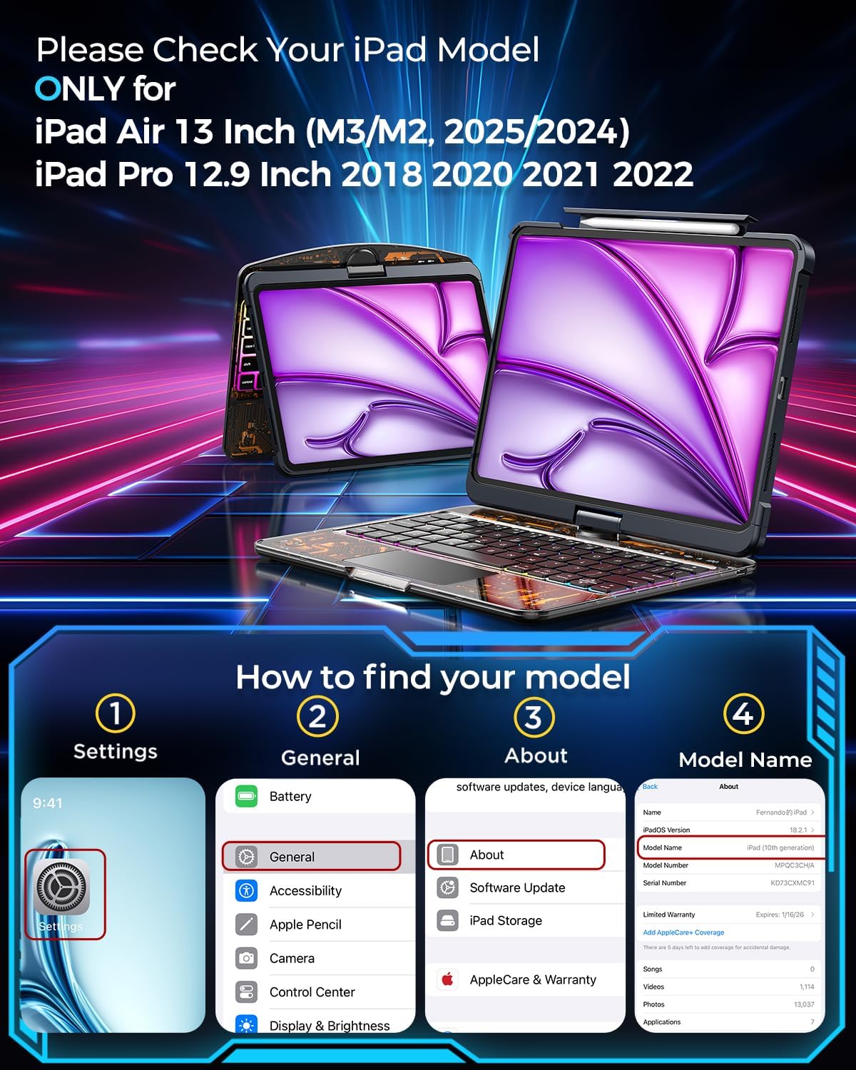 - Precise Fit for Your iPad: Designed exclusively for iPad Air 13 inch (M3 2025 / M2 2024), iPad Pro 12.9 inch (2022/2021/2020/2018), models (A2764, A2437, A2436, A2378, A2379, A2461, A2462, A2229, A2069, A2232, A2233, A1876, A2014, A1895). Please double-check your iPad's model number on the back cover to ensure a perfect fit.