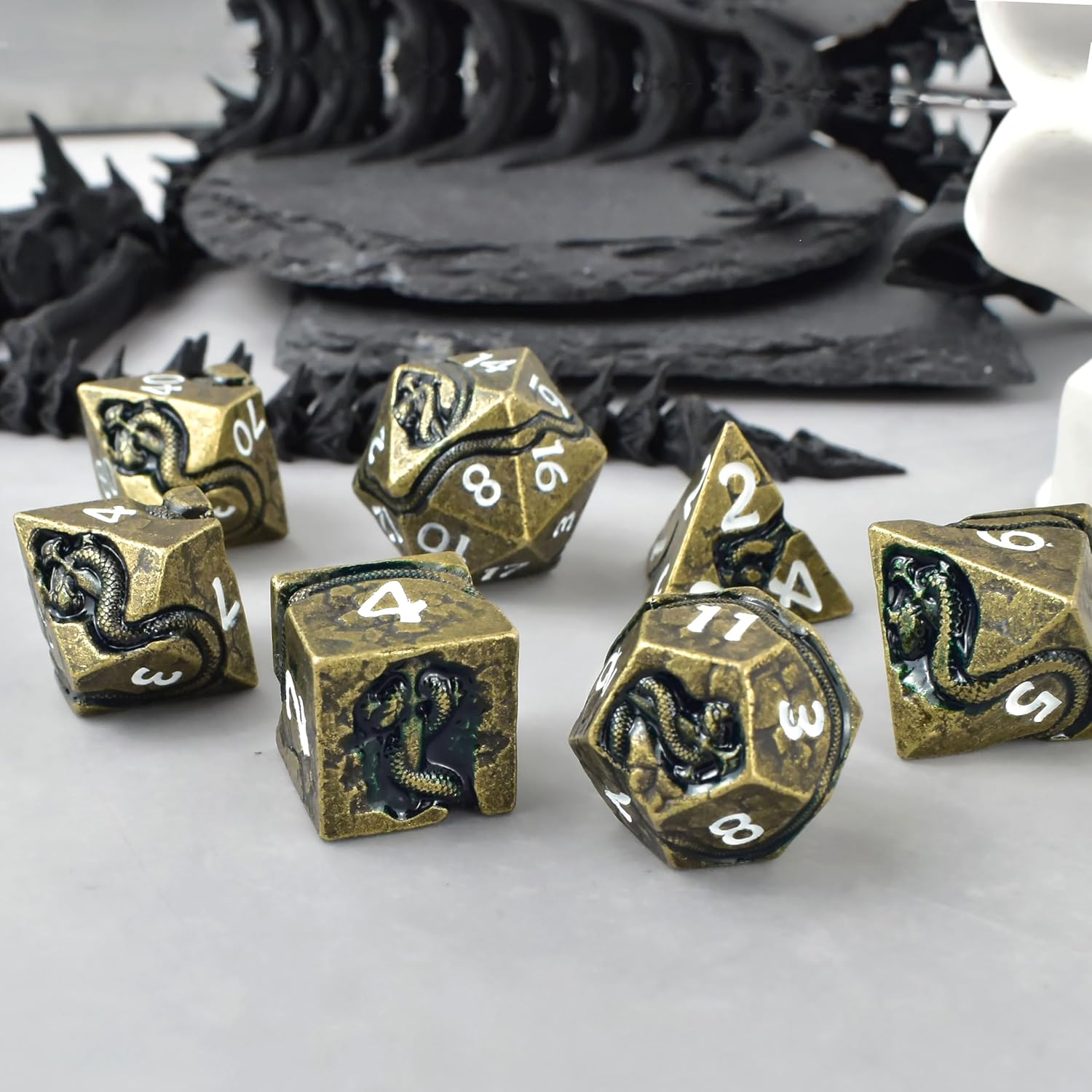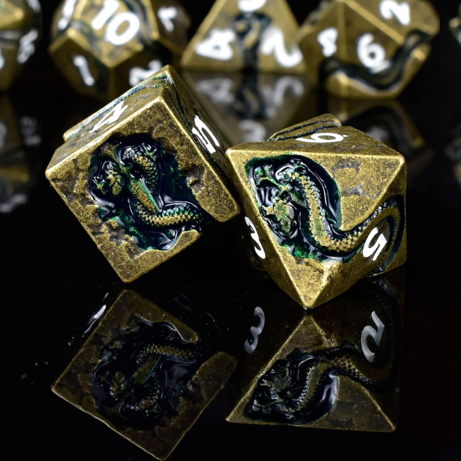 - 【BUILT TO LAST AN EMPIRE | DURABLE ZINC ALLOY】Like the timeless cities of the serpentine empire, these dice are crafted to endure. Made from high-density zinc alloy, they are durable to long lasting use. The vibrant green enamel is carefully applied to withstand countless campaigns, ensuring your serpent companion remains by your side through ages of adventure.