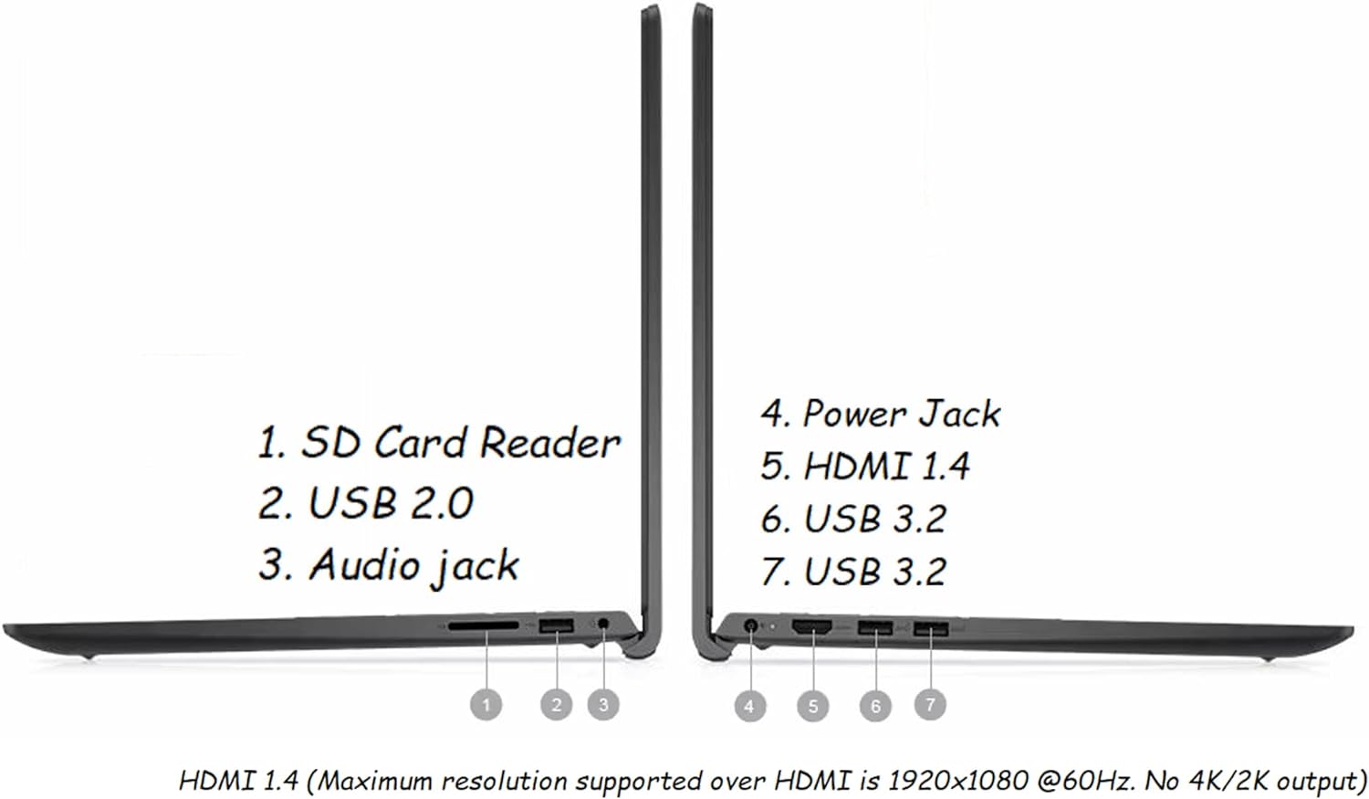 - Tech Specs: 1 x SD card reader, 1 x USB 3.2 Gen 1 Type-C, 1 x USB 3.2 Gen 1, 1 x USB 2.0, 1 x HDMI 1.4, 1 x Headset Jack, Numeric Keypad, Webcam, Wi-Fi 6, Windows 11 Home.