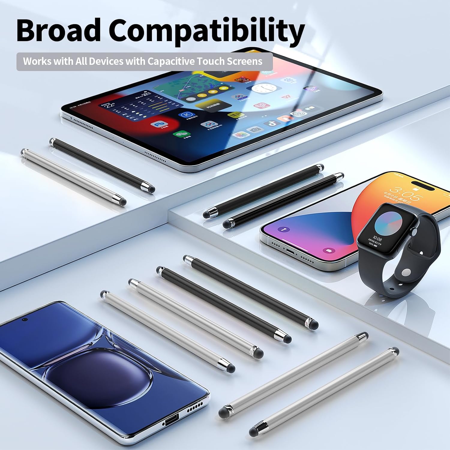 10 PCS Stylus,Stylus Pen for Touchscreen,Stylus 2-in-1 High Sensitivity & Precision Suitable for All Touch Screens of iPhone/ipad/Android Tablets(10 Stylus Pen Silver/Black + 20 Tips)