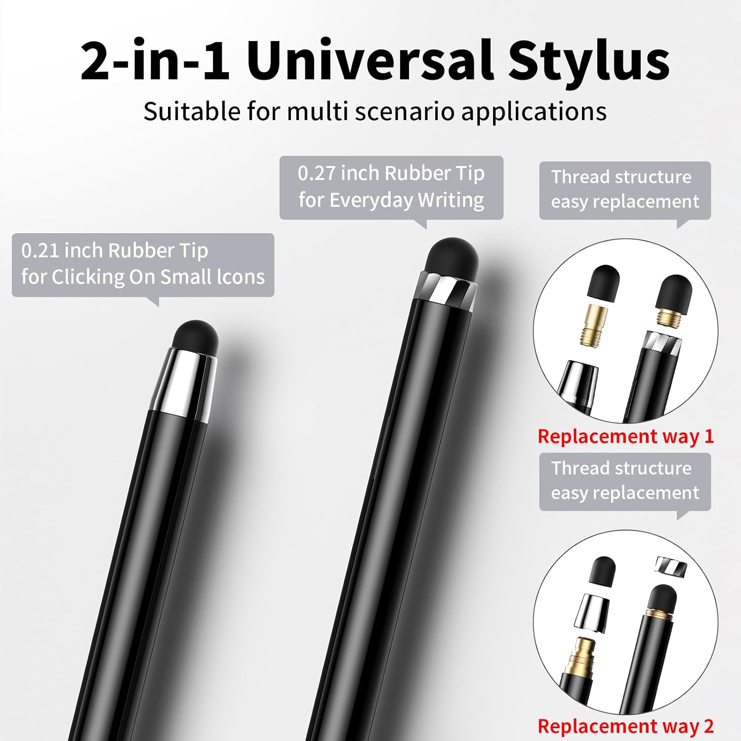 - 【Stylus Pen Set】You will get 5 stylus pens silver and 5 stylus pens black 10 0.27-inch, 10 0.21-inch replaceable rubber pen tips in one package. If you have any questions about the stylus pen for touchscreen, please feel free to contact our customer service team, We will solve it for you as soon as possible.