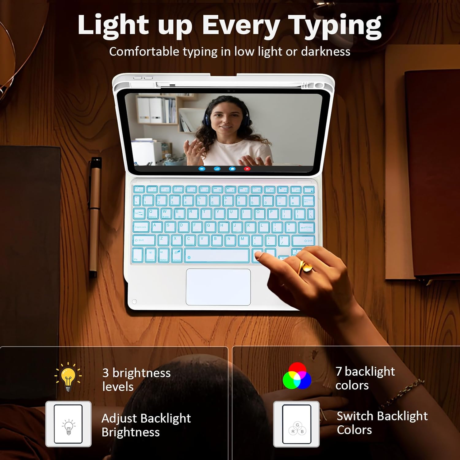 - 7-Color Backlit & Precise Multi-touch Trackpad: Our iPad 11th generation keyboard case features a 7-color backlit design and equipped with a built-in trackpad. 3 adjustable brightness levels and adjustable 7 RGB pure backlit allow you enjoy illuminated typing experience, type at day and night. Multi-touch trackpad on the iPad 10th Generation keyboard provides precise responses for editing, browsing, and videos; Transform your iPad (A16) 11th generation tablet 2025 into a laptop-like device