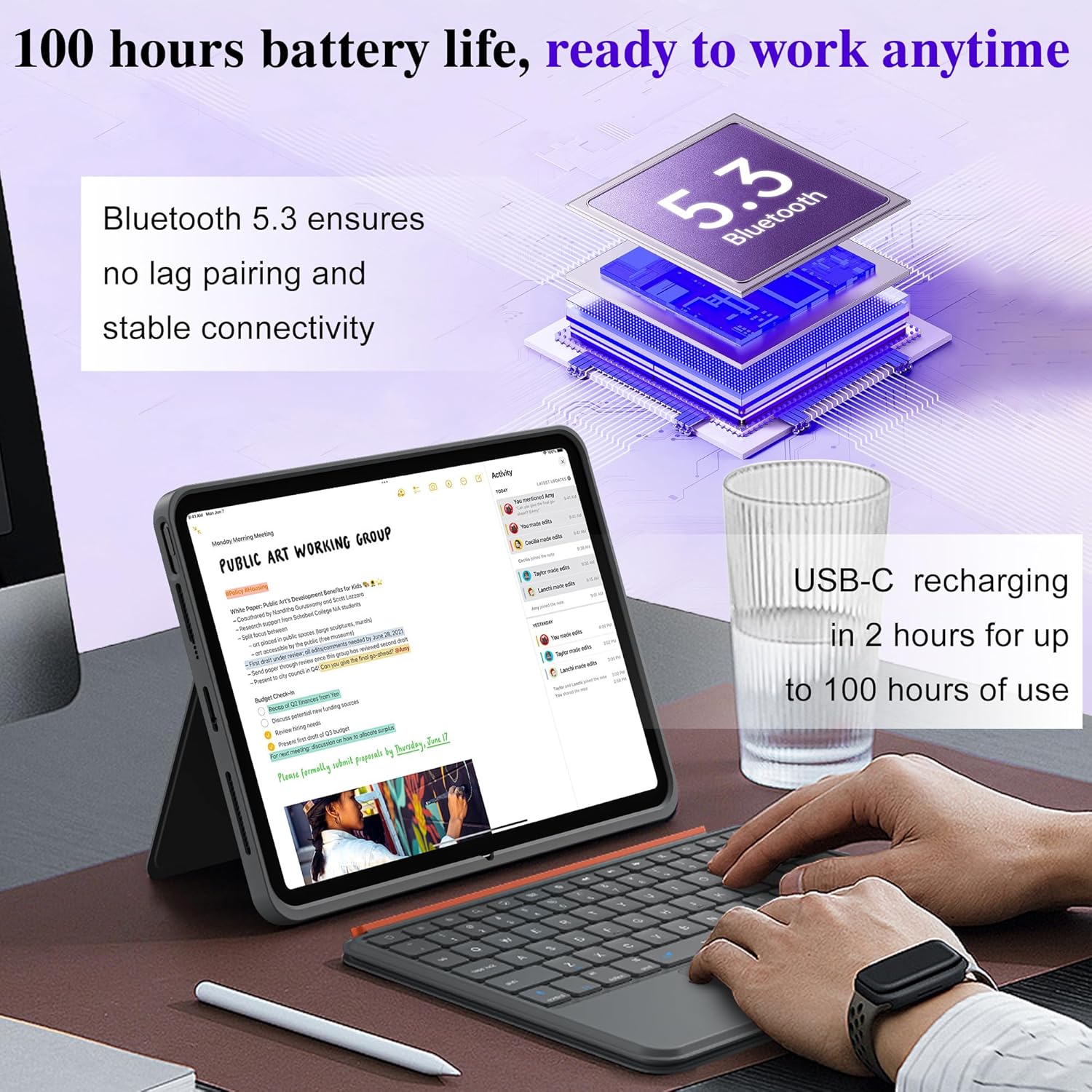 - Slim Design & Bluetooth No Lag:iPad air keyboard 0.25 inch ultra-thin design.The foldable stand adjusts from 0°to 170°,fill needs for different angles.Bluetooth 5.3 ensures instant,no lag pairing and stable connectivity.Easily switch to work mode during commutes or in cafes